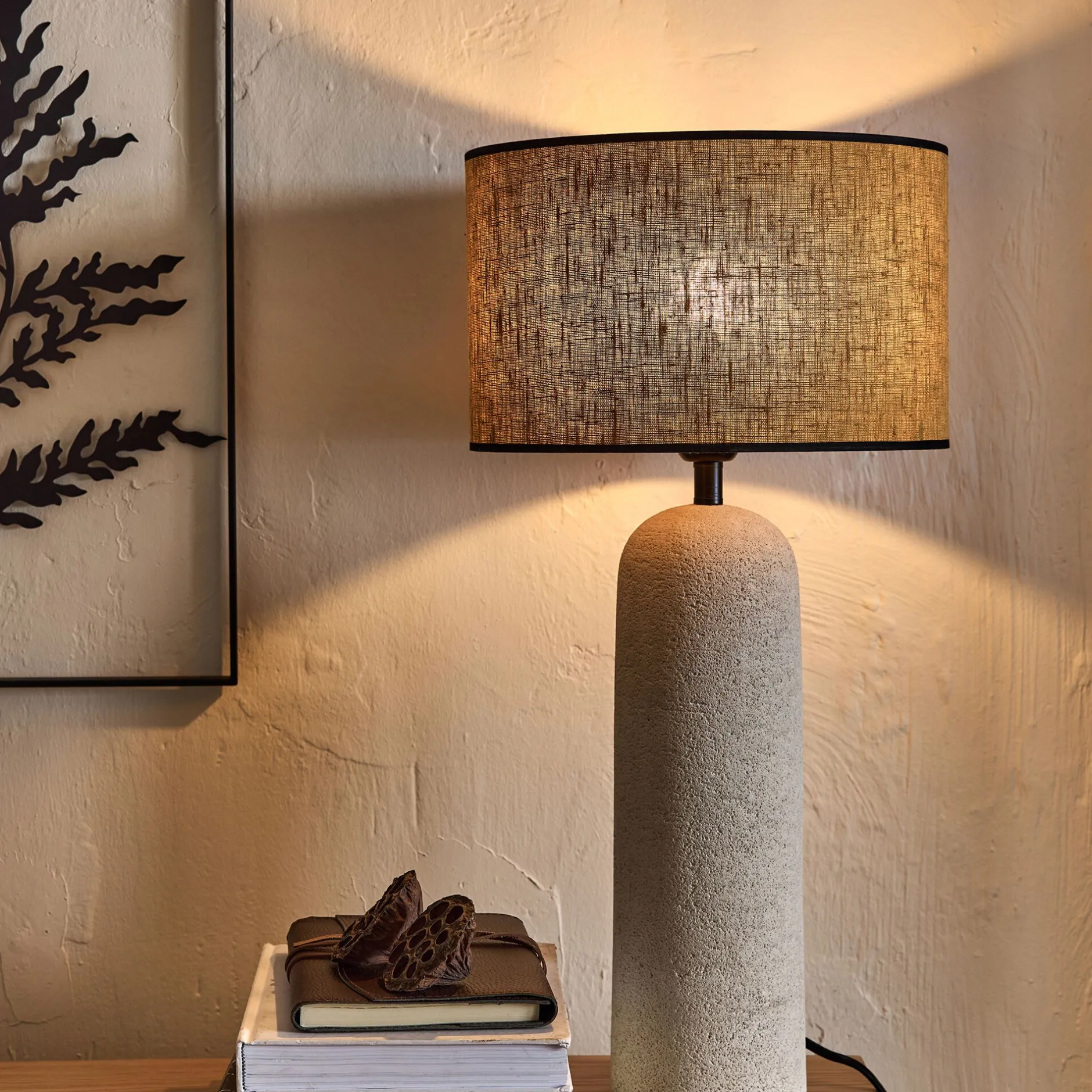 Abat-jour forme cylindre en tissu 100% lin avec une ganse noire.