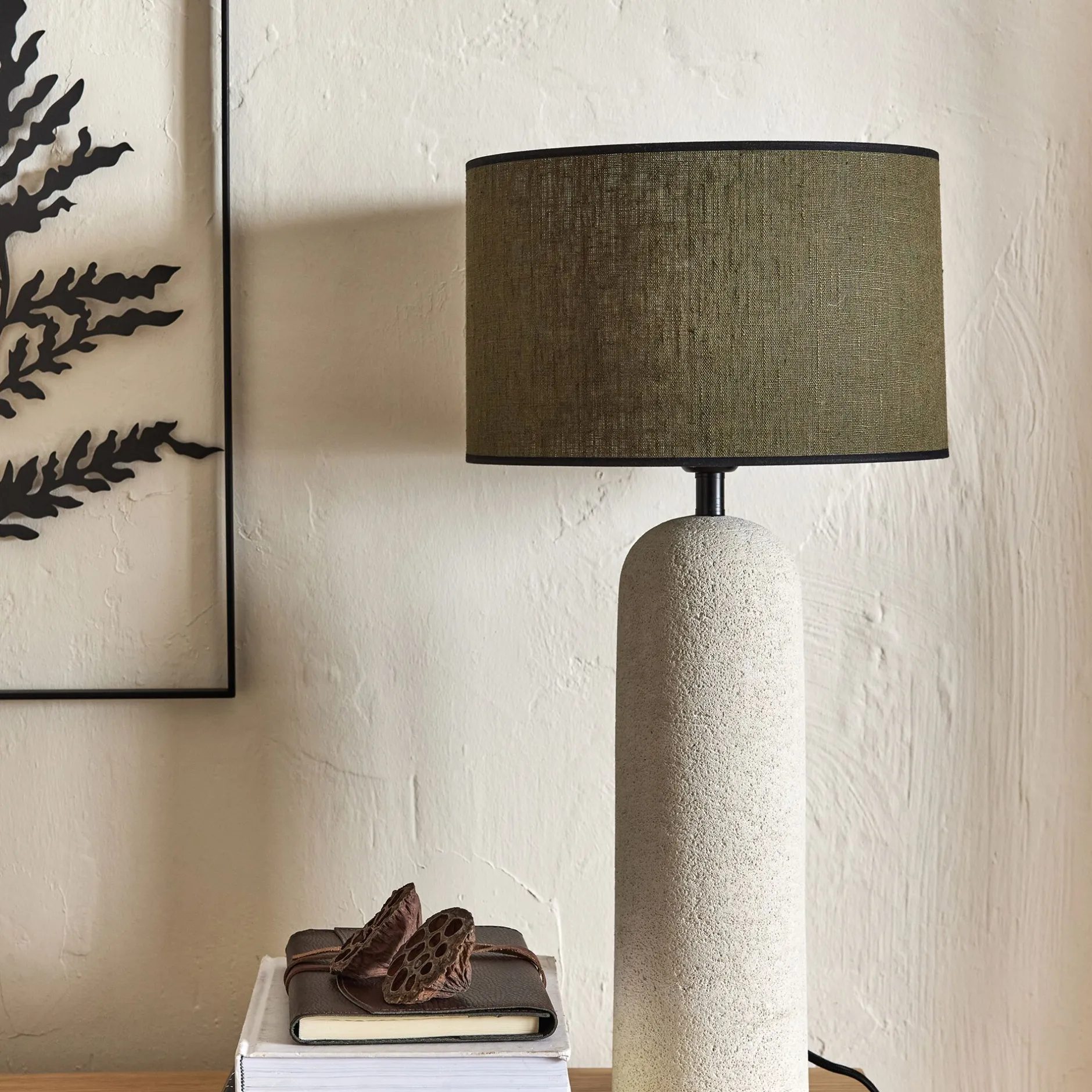 Abat-jour forme cylindre en tissu 100% lin avec une ganse noire.