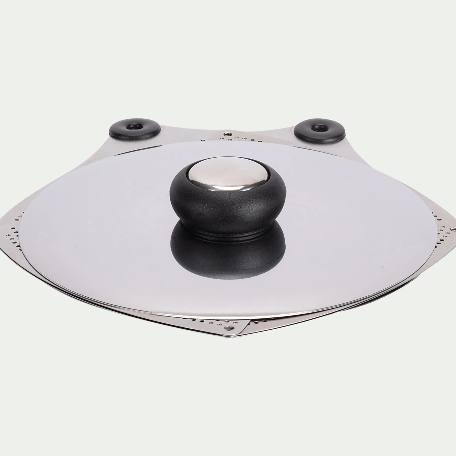 Ce couvercle anti-éclaboussures en forme d’éventail est l’allié incontournable pour cuisiner en toute propreté. Conçu en inox, il protège efficacement des projections d’huile ou de liquide chaud, tout en laissant s’échapper la vapeur pour éviter l’effet de condensation. Grâce à sa forme astucieuse et extensible, il s’adapte à une large gamme de casseroles et poêles (de 22 à 32 cm de diamètre), pour une utilisation polyvalente au quotidien. Son cadre robuste en inox résiste à la chaleur élevée, tandis que sa poignée ergonomique permet une prise en main sûre et un rangement facile. Pratique, durable et simple à entretenir, cet accessoire convient aussi bien aux cuisiniers amateurs qu’aux passionnés exigeants. Un indispensable pour une cuisine propre, sûre et bien maîtrisée.