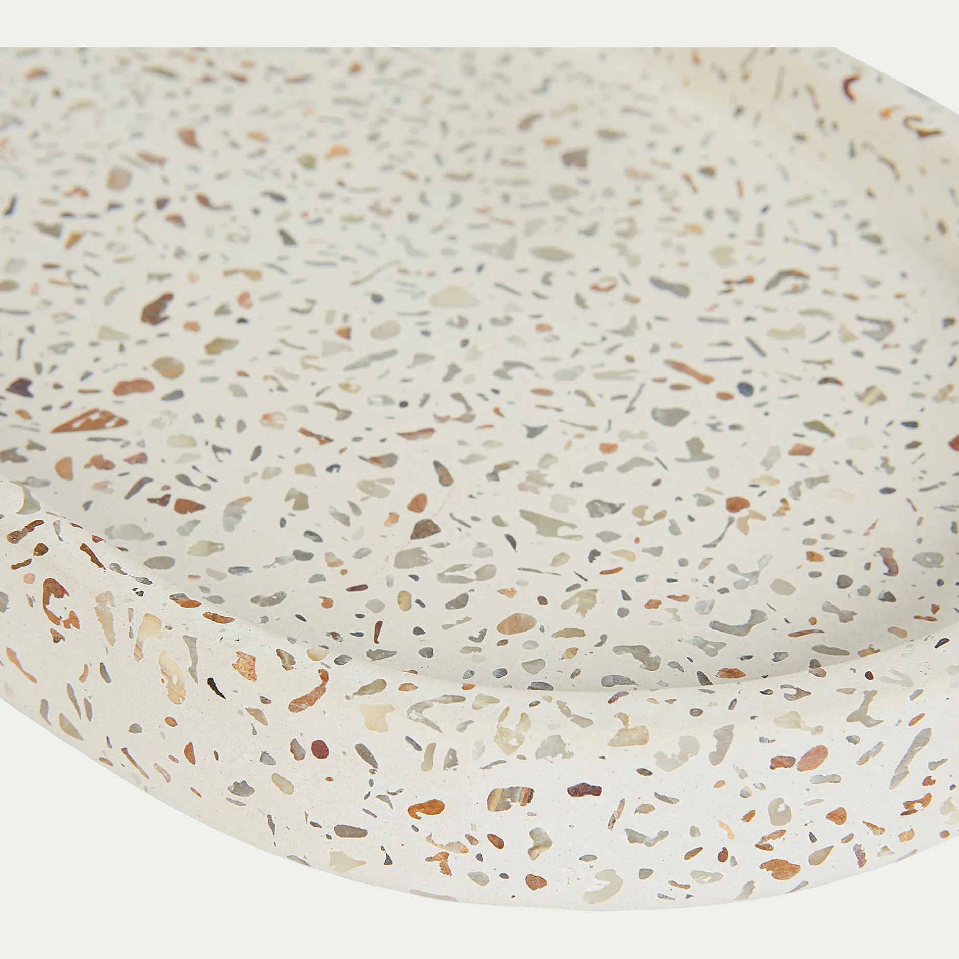 Ce plateau blanc donne du charme et de l’élégance à votre salle de bain. Entre tradition et modernité, il facilitera votre quotidien et saura apporter du style en toute discrétion grâce à l’originalité de son terrazzo. Vous pourrez y glisser vos bijoux le soir ou encore le matin lorsque vous vous préparez. Non seulement pratique de par sa fonction, ce plateau est aussi un véritable élément de décoration. Pour une salle d’eau harmonieuse, complétez votre set avec le reste des accessoires de salle de bains de la collection Terraio.