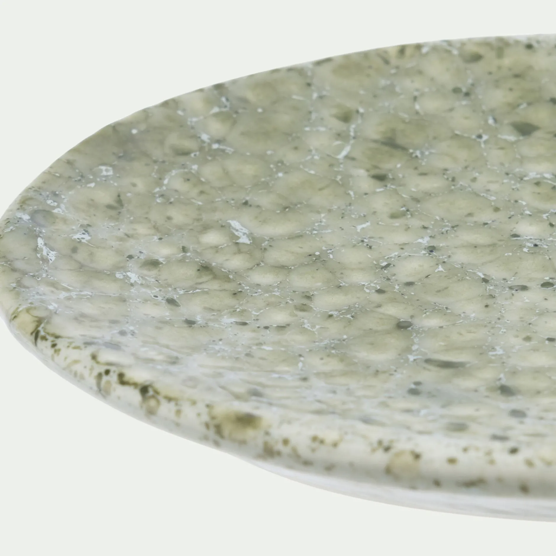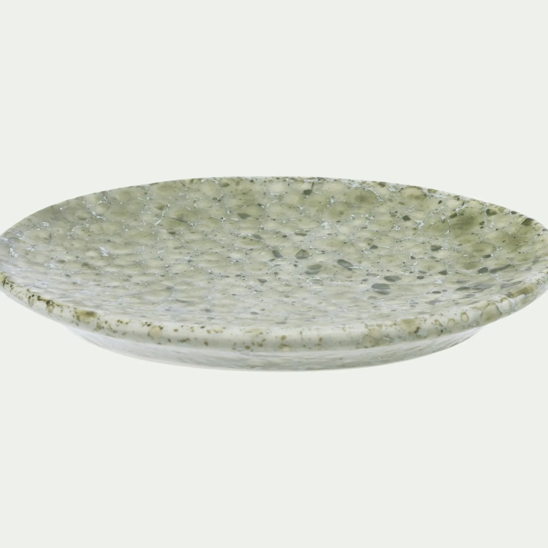 Indispensable dans la salle de bain, le porte-savon permet d’exposer proprement un pain de savon de Marseille. Légèrement creux, il retient l’eau et laisse le lavabo parfaitement propre, avec une touche de couleur décorative. Fabriqué au Portugal, ce porte-savon vert met en valeur la matière iconique de ce pays chaleureux : la faïence. Cette céramique offre un aspect délicat et raffiné, ici avec un motif inspiré du terrazzo.