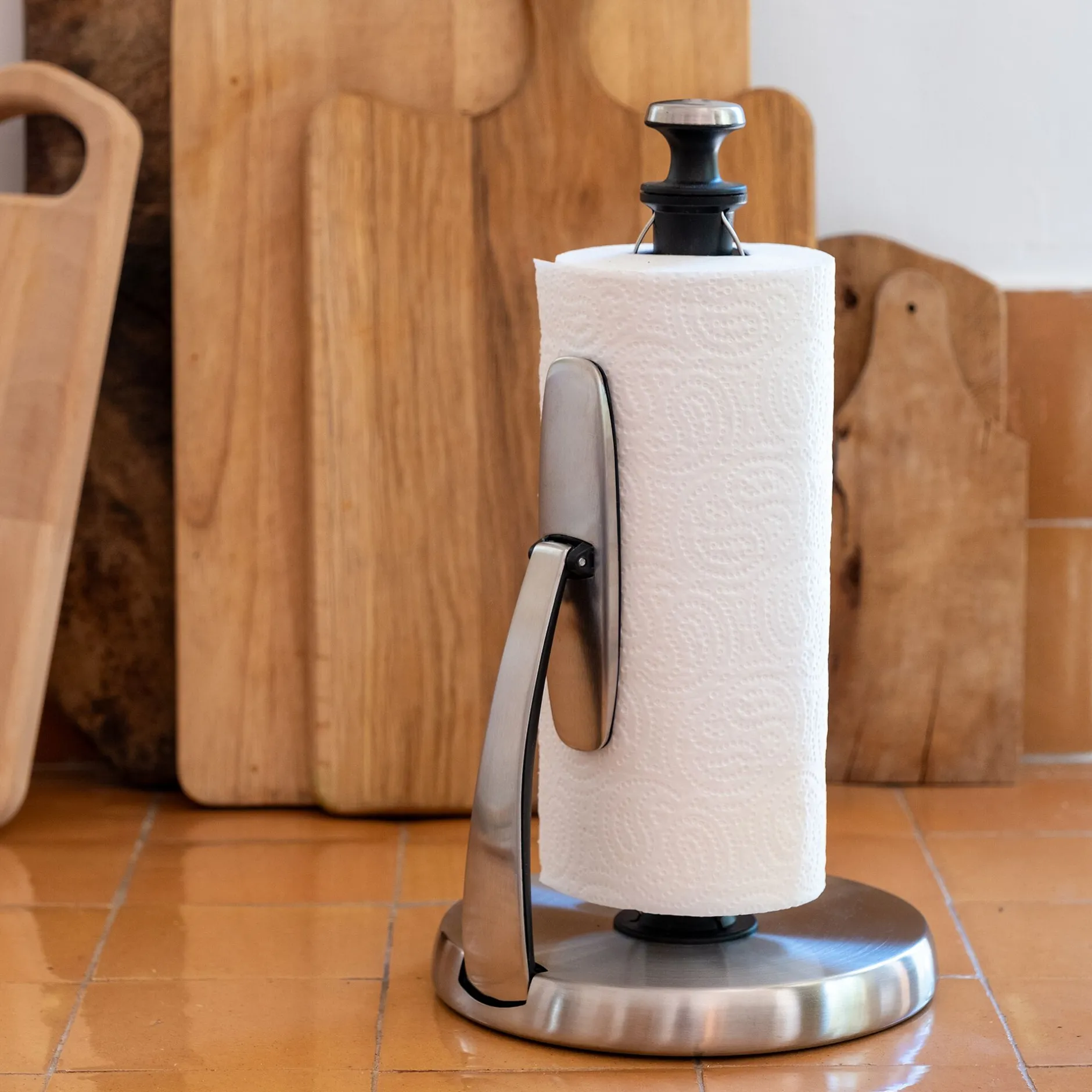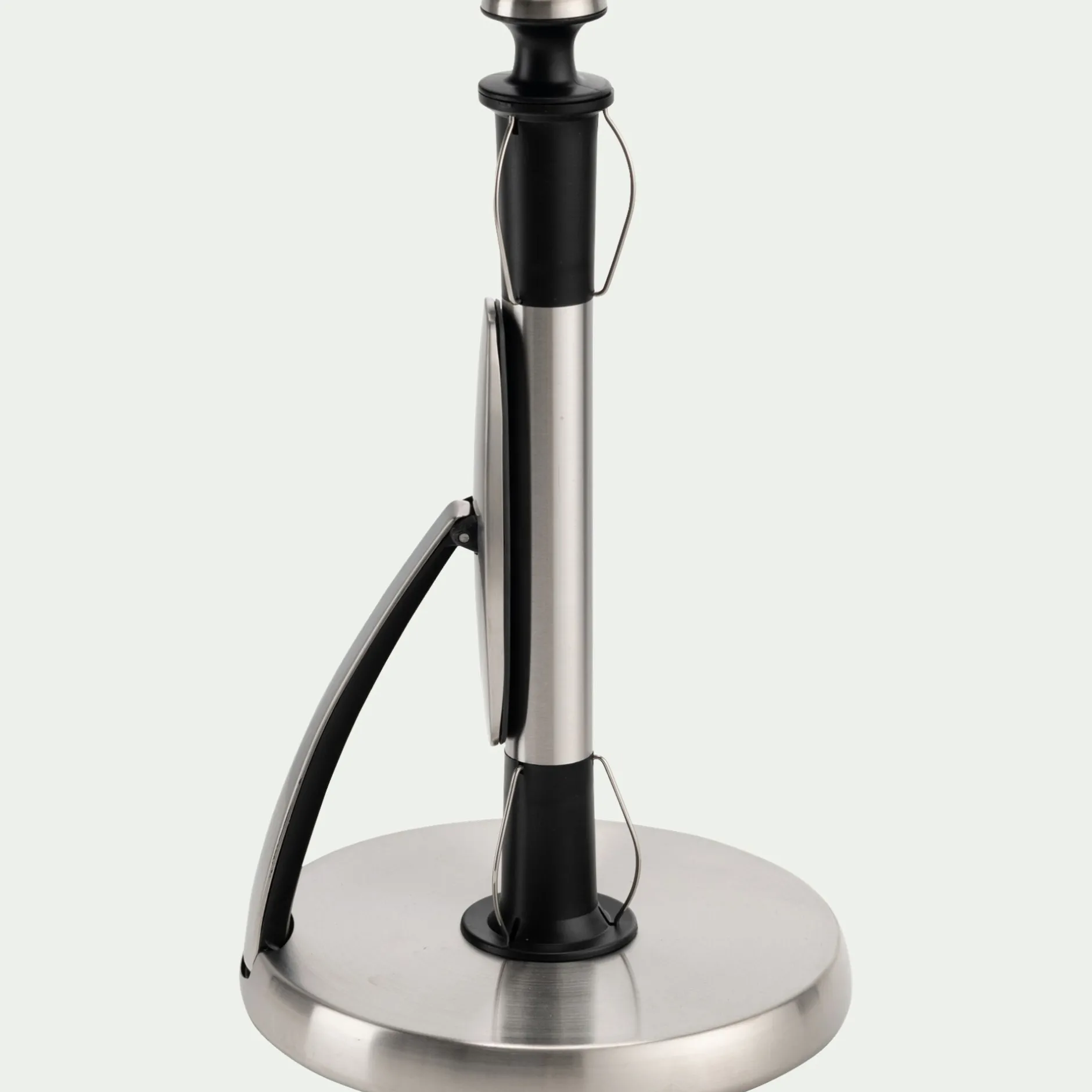 Le dérouleur pour essuie-tout se rendra vite indispensable dans votre cuisine ou à table grâce à sa grande praticité. Son bras de tension maintient fermement l’essuie-tout afin qu’il ne se déroule pas, et que vous puissiez donc prendre une feuille de papier absorbant d’une seule main. Pratique, quand on cuisine et que l’on a les mains sales ou encombrées. La conception en acier inoxydable rend ce porte essuie-tout suffisamment lourd et stable, lui garantissant ainsi un équilibre parfait, même en extérieur. Sa base antidérapante ne craint pas les rayures, et en fait un accessoire durable. Le bouton situé sur le dessus, permet de porter le dérouleur de la cuisine à la table, sans salir les feuilles de papier.