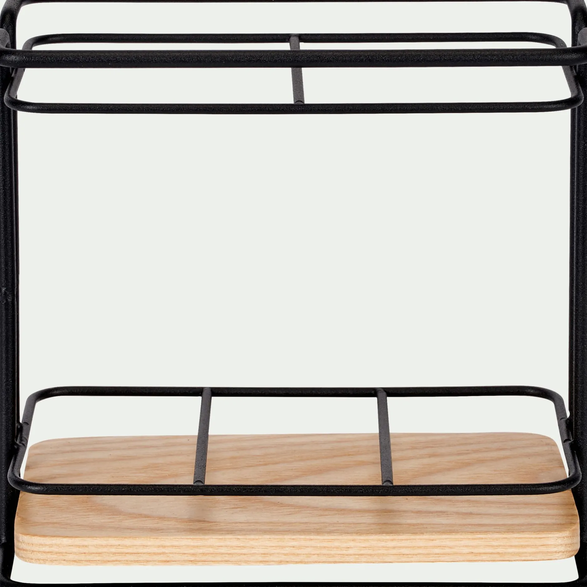 Un support à 3 compartiments en bois et métal noir qui sera très pratique pour y ranger vos ustensiles de cuisine. Une alliance de matières laissant émaner un esprit déco et authentique pour ce support à ustensiles que vous déposerez sur le plan de travail de la cuisine.