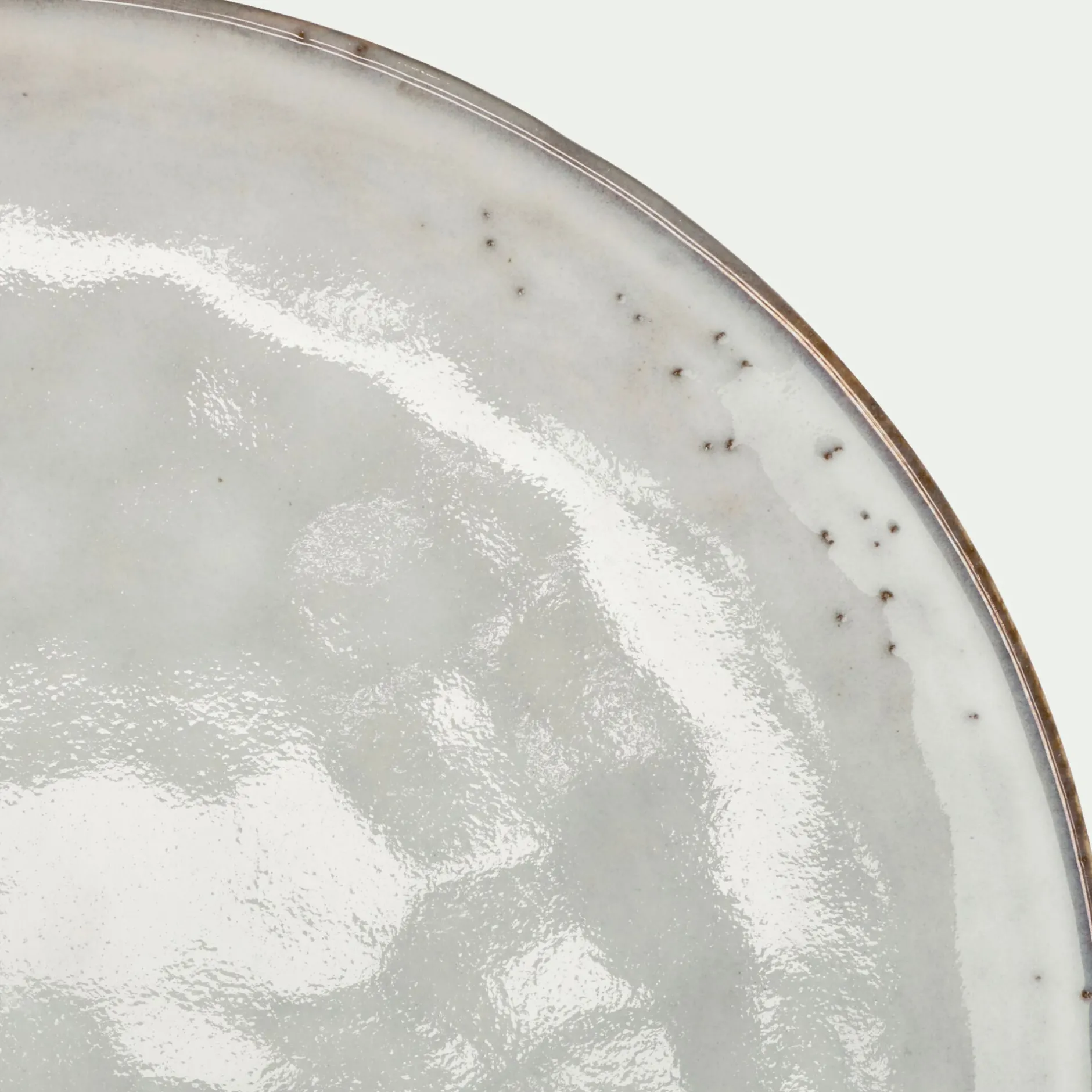 Découvrez cette belle assiette à dessert en grès vert qui apportera de l’authenticité à votre dressage de table. Ces magnifiques imperfections donnent du caractère à cette vaisselle. Elle s’inspire de la nature pour vous proposer un design minéral qui ravira vos convives. La subtilité de sa forme saura mettre en avant vos gourmandises sucrées et vous pourrez l’associer aux autres assiettes de la gamme afin de créer un bel ensemble.