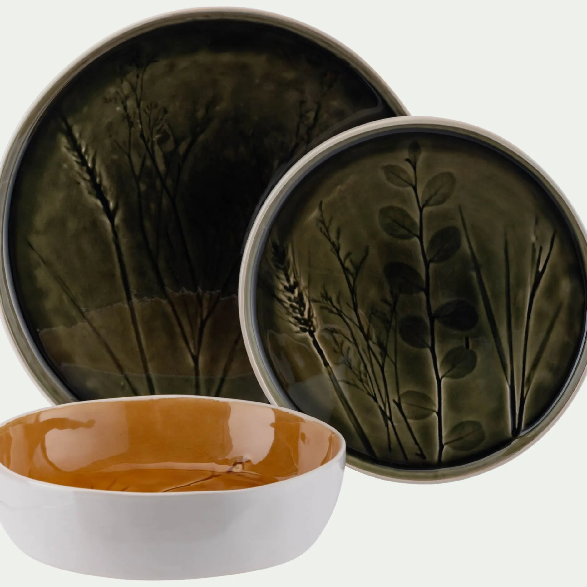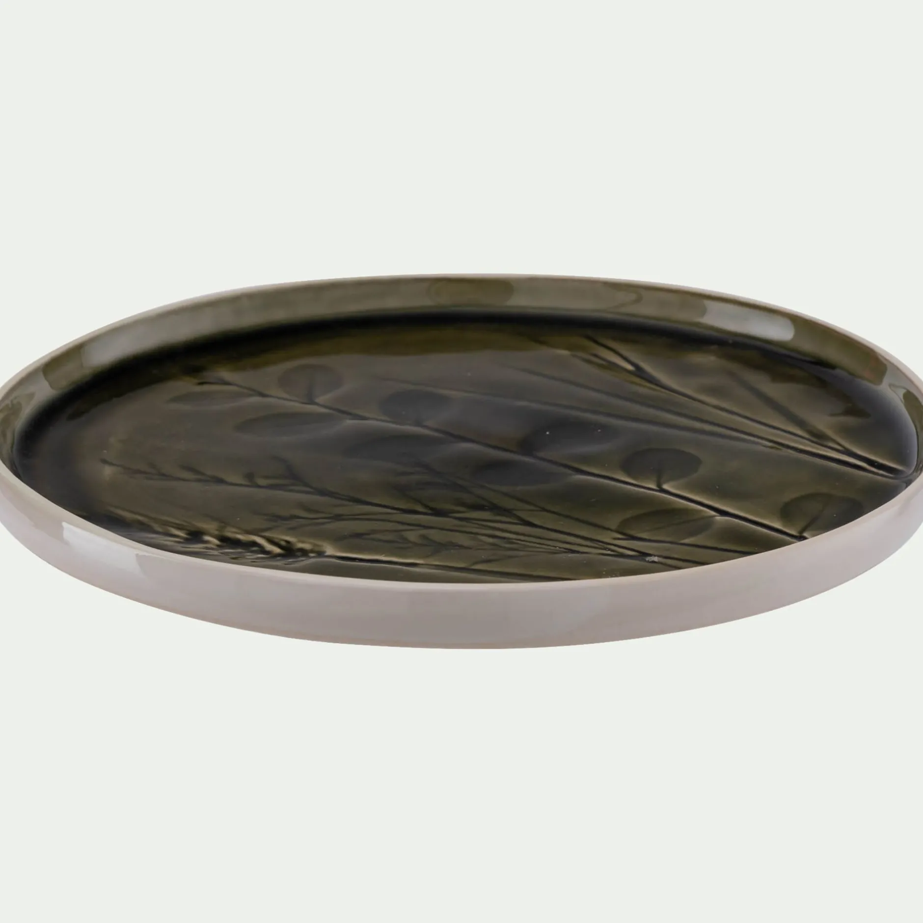 L’assiette à dessert Fleole de 20 cm en vert avocado séduit par sa délicatesse et son esprit bucolique. Réalisée en grès, elle présente de jolies impressions végétales qui rappellent la poésie de la nature. Sa teinte douce et naturelle s’harmonise parfaitement avec une table élégante et champêtre.