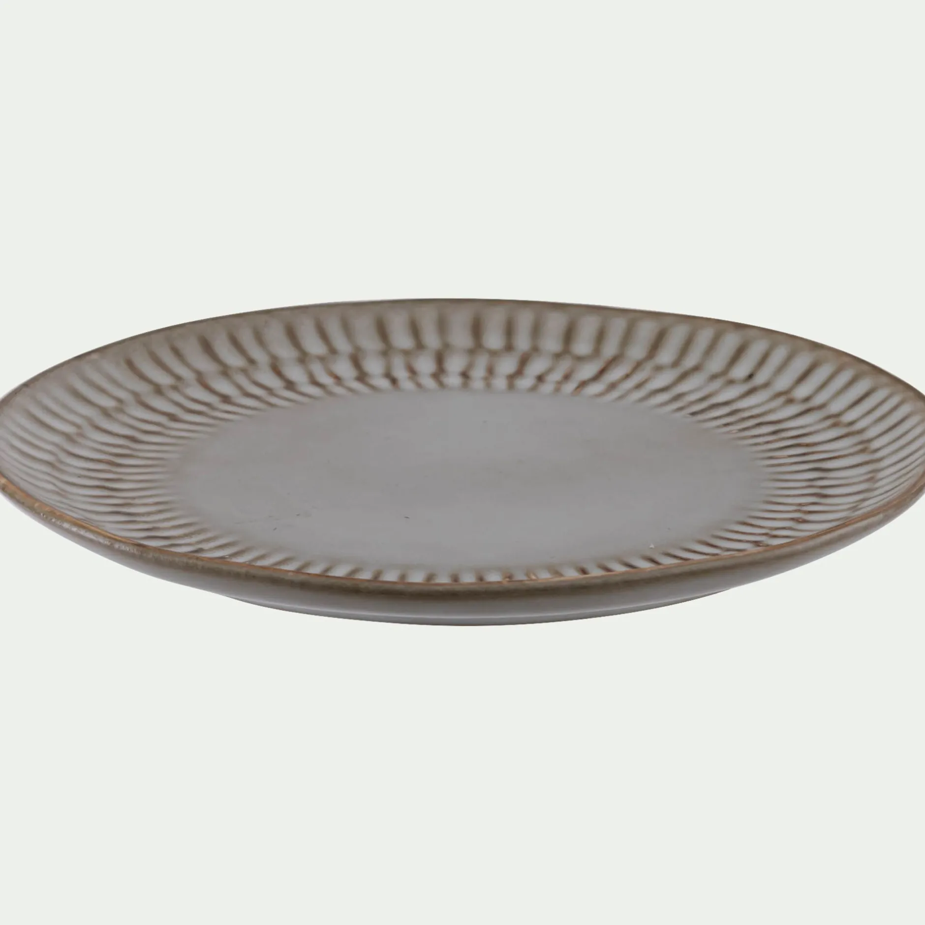 Pour toujours plus de plaisir, servez et dégustez vos desserts dans la belle assiette Liam. Cette petite assiette ronde est confectionnée en grès, un matériau solide et noble. Elle se distingue par son bord en relief qui arbore un effet martelé. La céramique est ainsi texturée pour offrir une expérience avant tout visuelle, puis gustative. Cette assiette à dessert affiche notre coloris blanc ventoux, une nuance claire qui met en valeur toutes les merveilles de l’univers de la pâtisserie.
