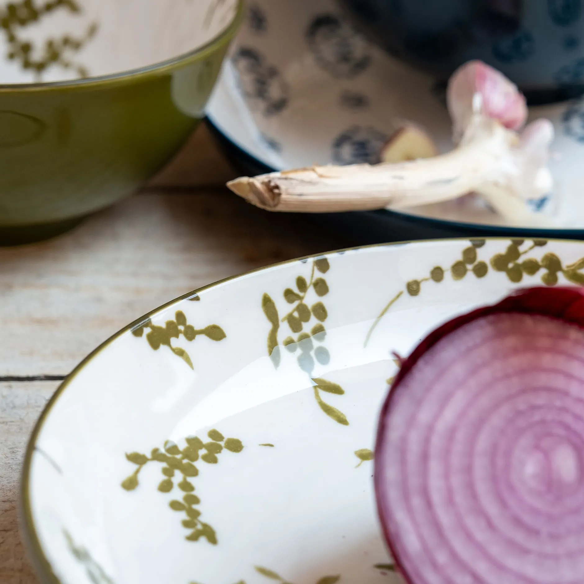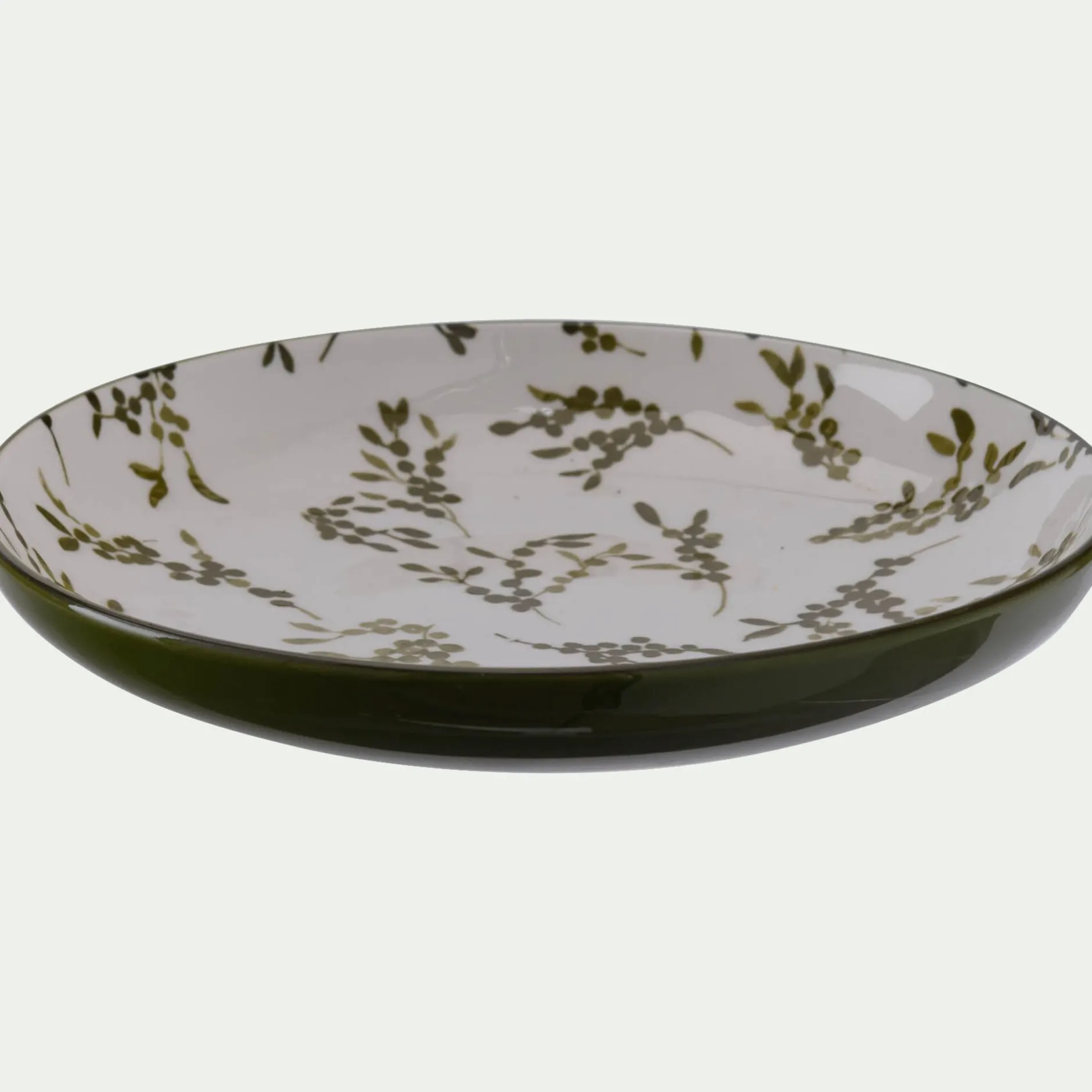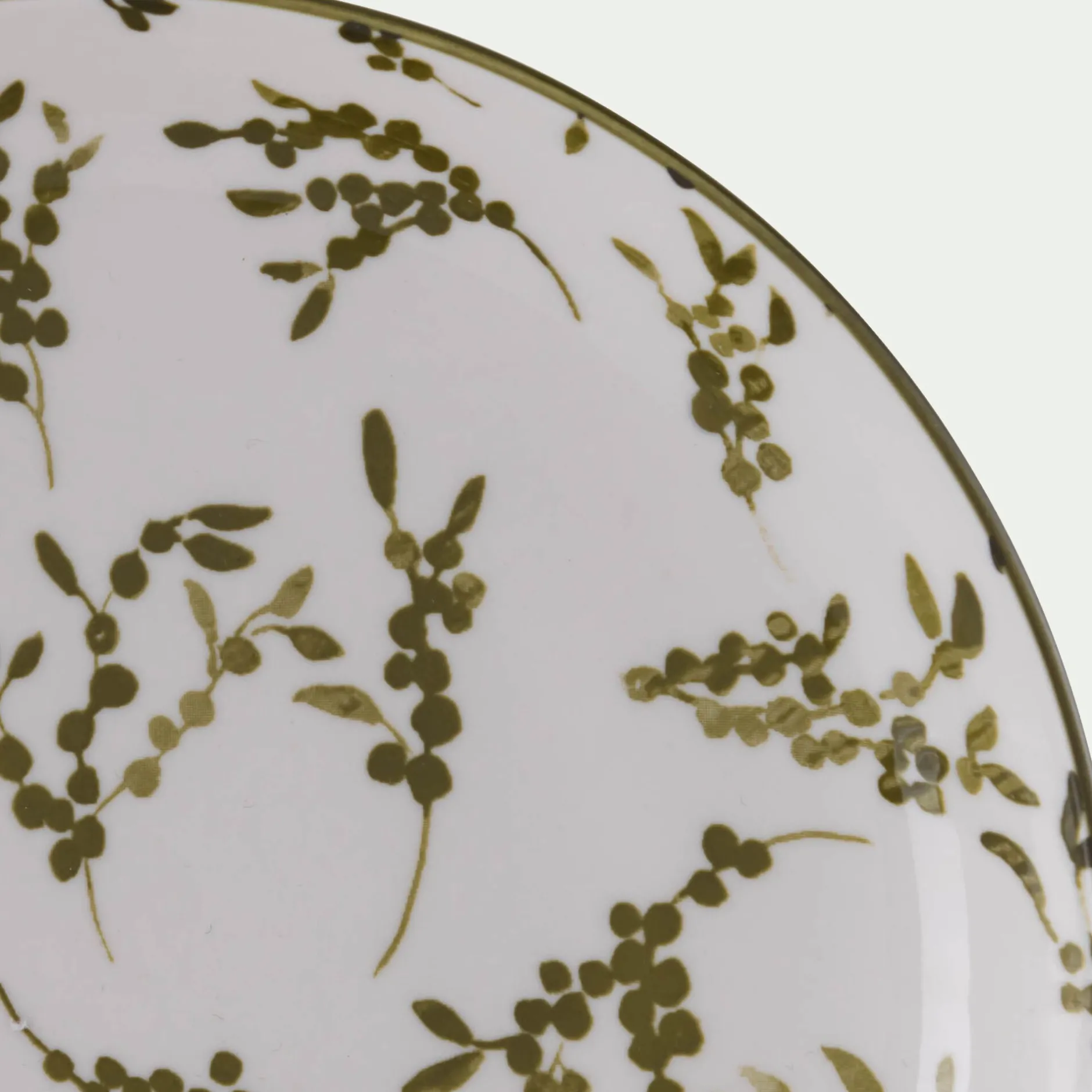 Craquez pour l’assiette à dessert Baia : une petite assiette ronde de 20cm de diamètre qui se distingue par son motif végétal. Sur la porcelaine blanche se dessine quelques branches légères dans un coloris vert. Une assiette originale et poétique qui ne manque pas de sublimer les fins de repas.