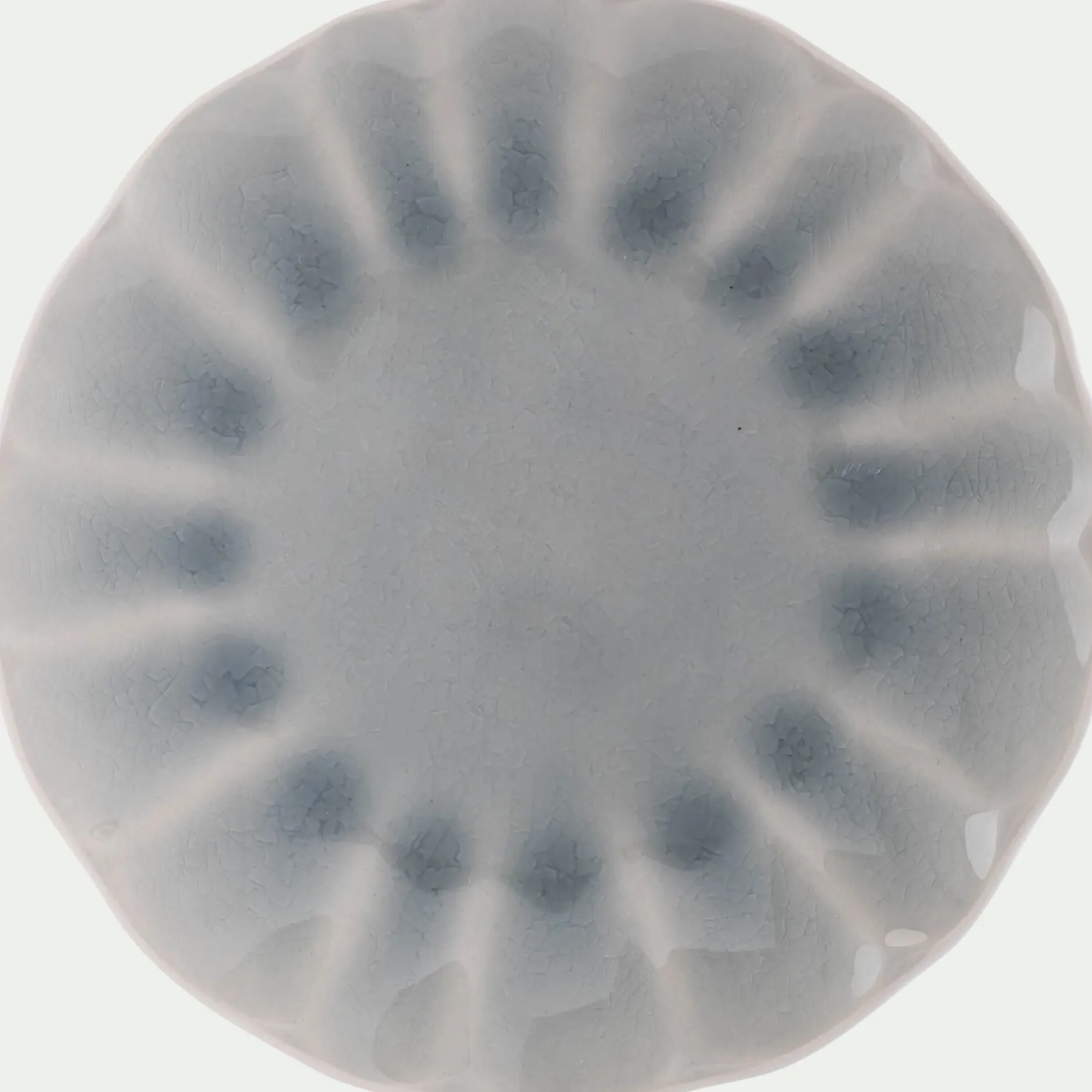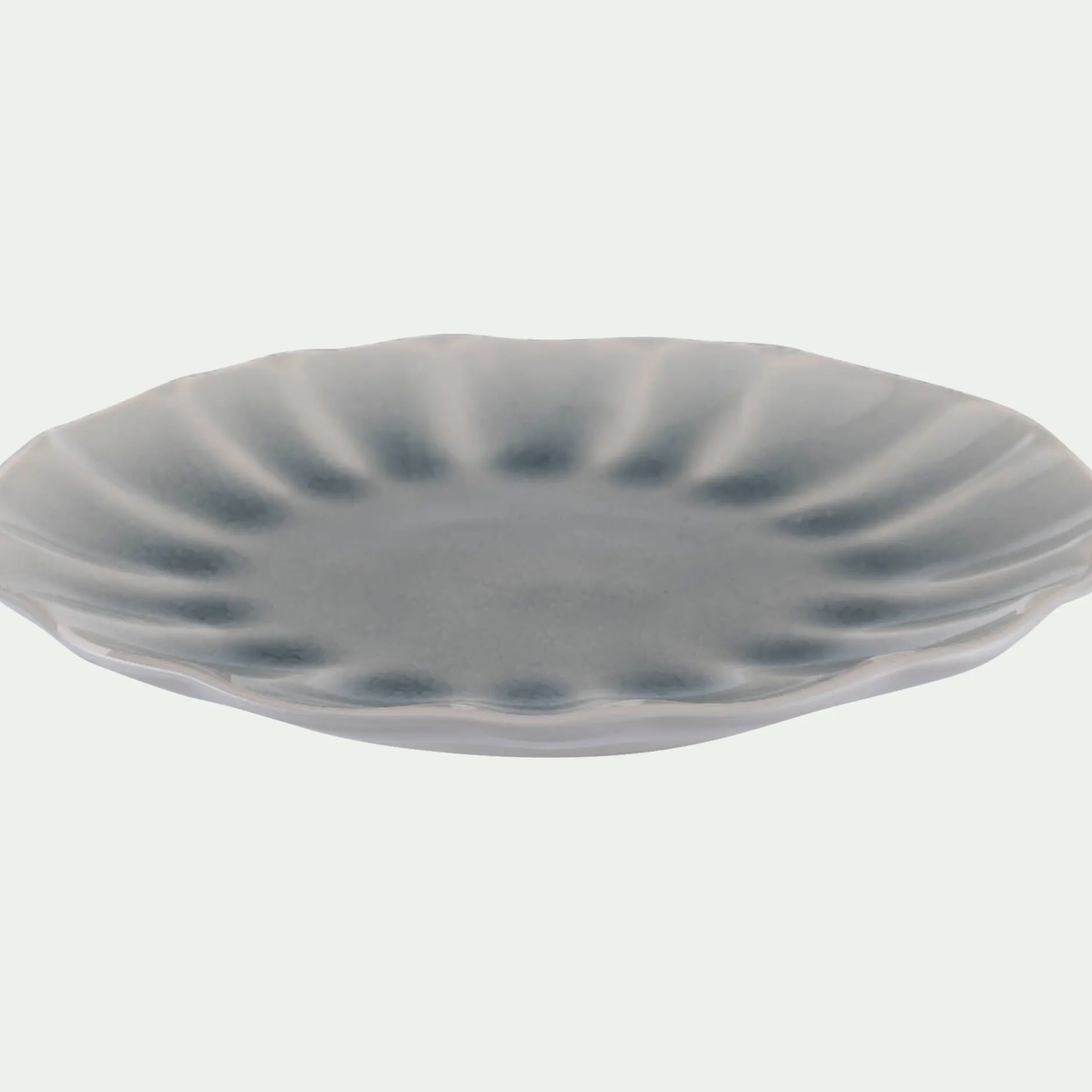 L’assiette à dessert Giulia séduit par sa délicatesse et ses nuances poétiques. Confectionnée en grès bleu, elle présente une bordure légèrement ondulée, comme une corolle de fleur, qui fait subtilement varier les teintes. D’un diamètre de 21 cm, cette petite assiette est idéale pour les desserts, les entrées ou une petite pause gourmande. Un joli mélange d’élégance et de naturel pour embellir chaque instant à table.