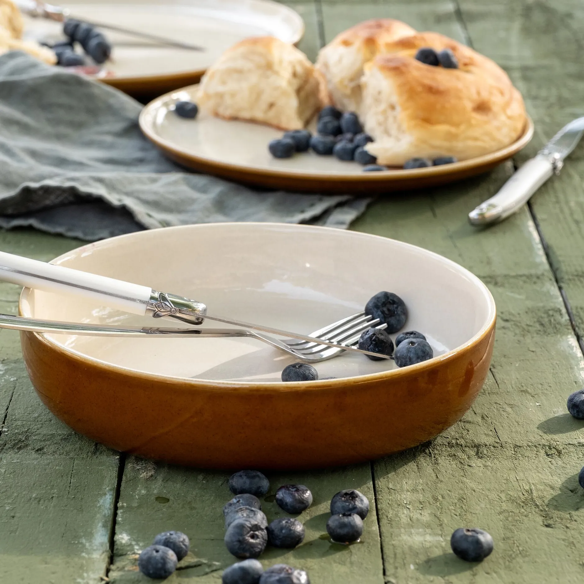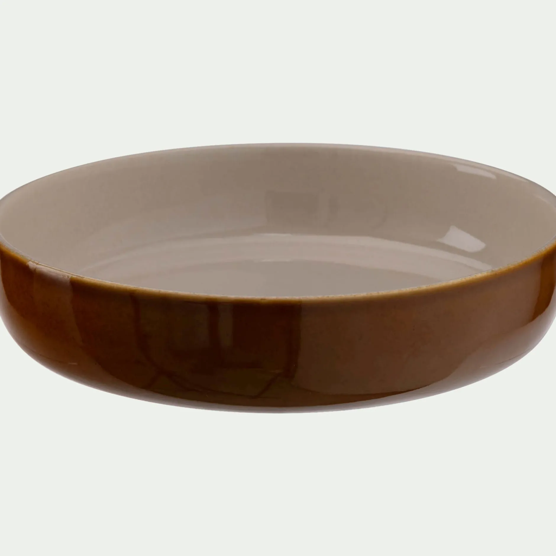 L’assiette creuse Terria accueille avec style les plats en sauce, soupes ou pâtes. Son bord légèrement relevé et sa teinte brun laquier lui confèrent une présence forte et élégante. En grès portugais, elle conjugue authenticité, praticité et esthétisme pour sublimer les repas du quotidien comme les grandes occasions.