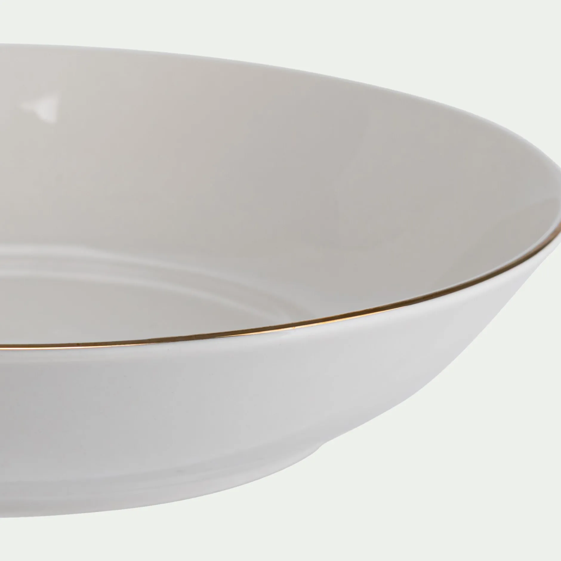 L’assiette creuse Alice est une pièce incontournable de votre service de table. Conçue en porcelaine blanche de haute qualité, elle se distingue par sa sobriété et son élégance intemporelle. Son bord délicatement souligné d’un liseré doré apporte une touche chic et raffinée à vos repas. Idéale pour servir des plats de pâtes, des soupes ou des entrées, elle s’associe à merveille avec les autres pièces de la même collection pour une table harmonieuse. Complétez votre service avec les assiettes plates et les assiettes à dessert Alice pour une table de caractère qui vous ressemble.