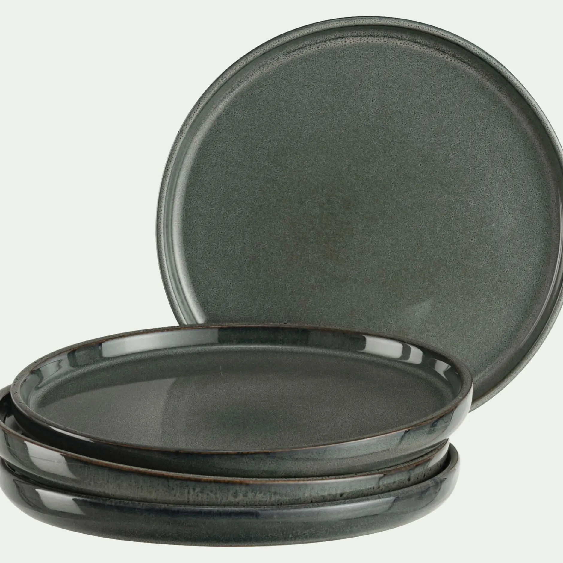 Ce lot de 4 assiettes à dessert sublime chaque gourmandise avec élégance. Leur émail réactif révèle un coloris vert olivier profond et nuancé, évoquant la nature et la simplicité des matières brutes. Avec un diamètre de 21 cm, ces assiettes en grès sont parfaites pour accueillir pâtisseries, fruits ou petites douceurs. Le grès, robuste et raffiné, leur assure une belle résistance au quotidien tout en apportant une touche chaleureuse à la table.