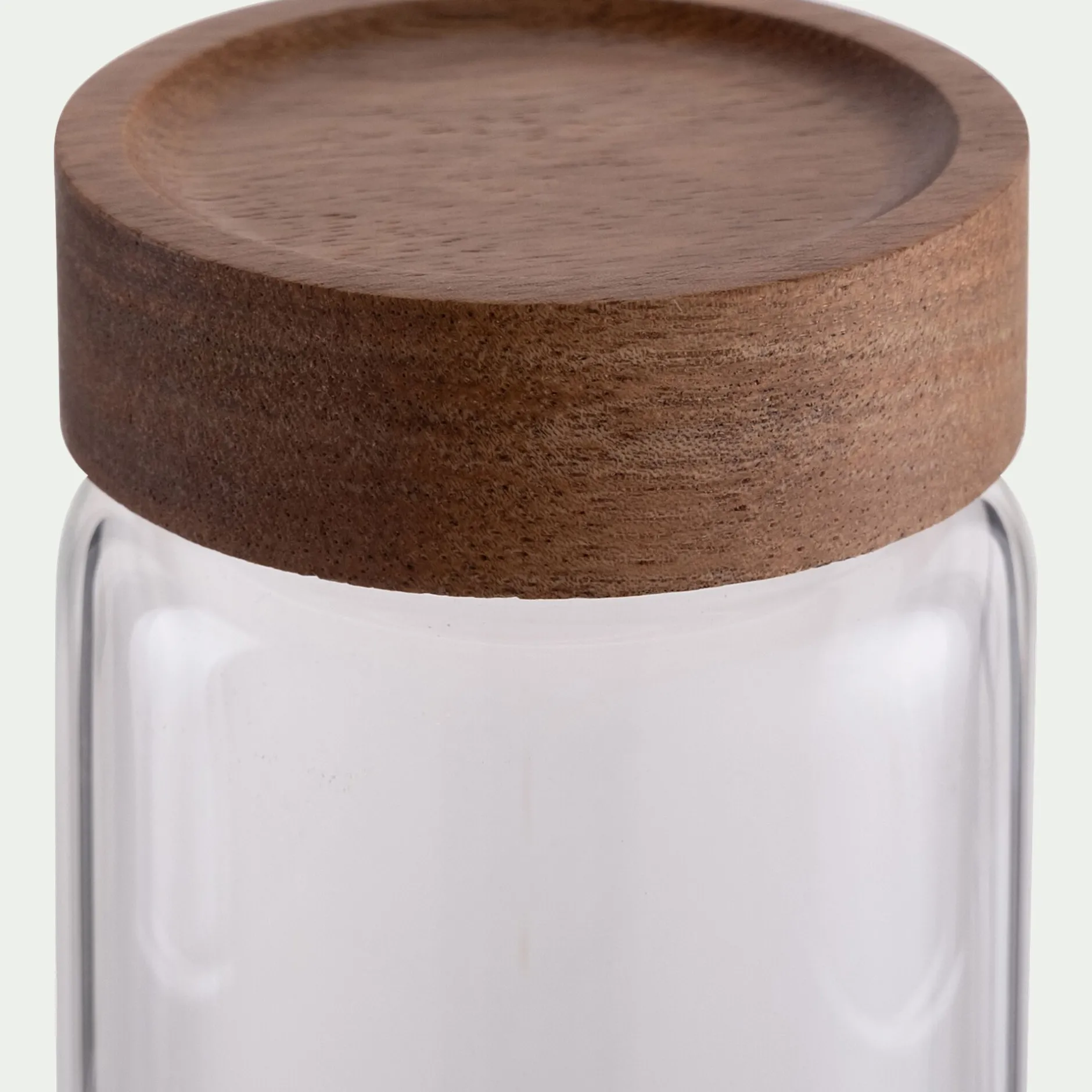 Optimisez votre cuisine avec ce bocal transparent au design épuré et moderne. D’une capacité de 30 cl, ce bocal en verre est un matériau résistant et hygiénique. Il est doté d’un couvercle en bois d’acacia. Son format pratique est idéal pour conserver épices, graines, fruits secs ou autres petits ingrédients. Découvrez aussi le reste de la gamme pour créer un bel ensemble.