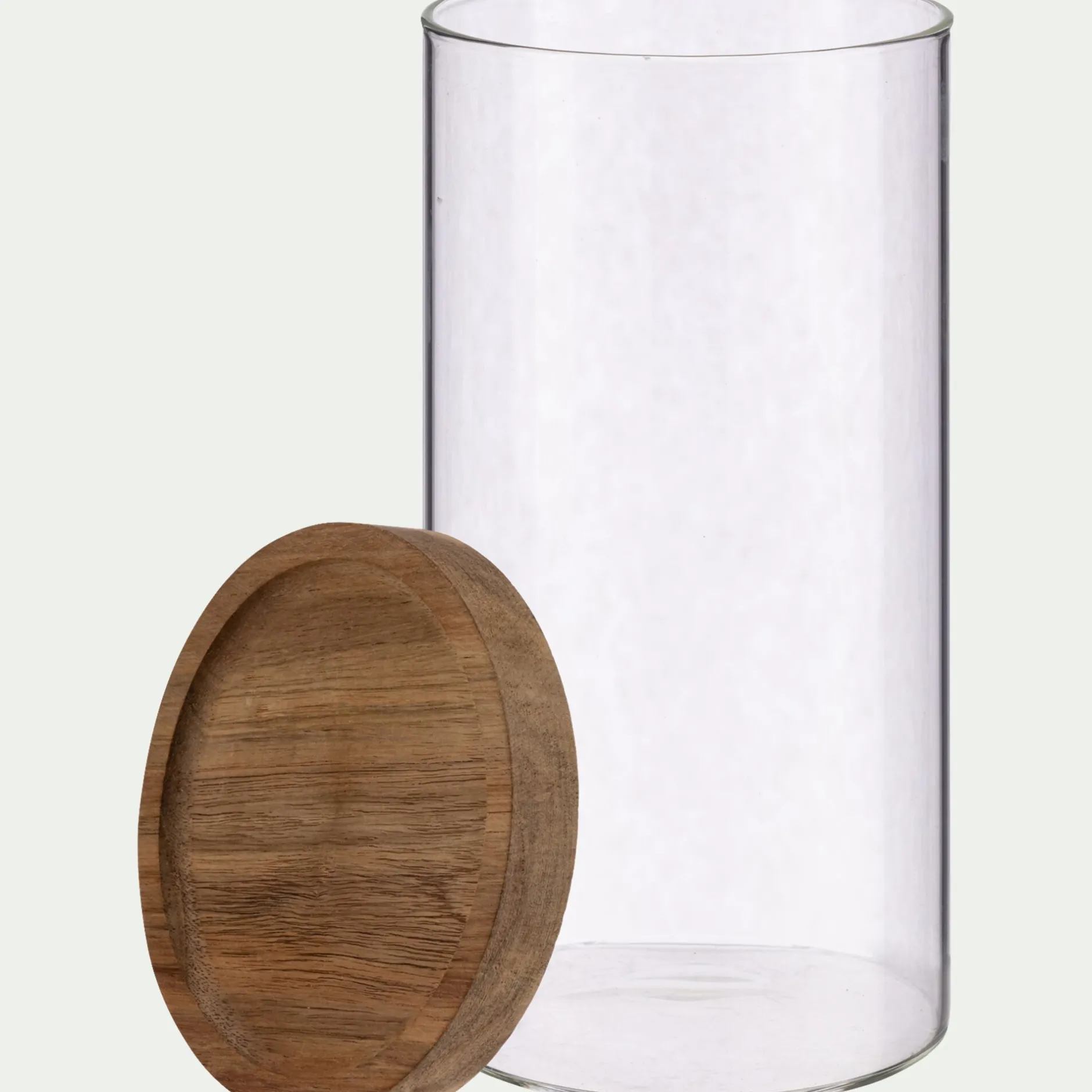 Pour organiser et optimiser votre cuisine, rien de tel que des bocaux transparents. Le bocal Ronda arbore un design simple, cylindrique, pour un rendu contemporain. Il est confectionné en verre, un matériau résistant et hygiénique, avec un couvercle en bois d’acacia. Transparent, ce bocal 1L permet de voir ce que l’on range à l’intérieur : pâtes, noix, riz, lentilles… Et autres mets à conserver avant dégustation.