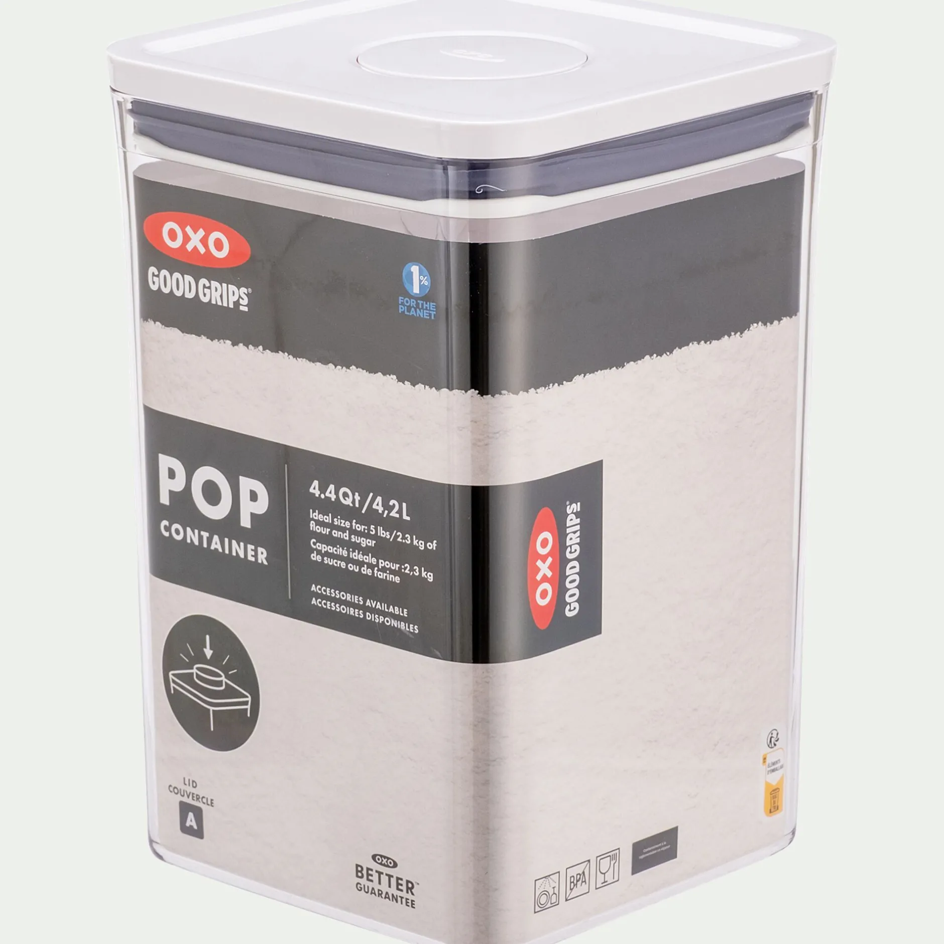 Rangez votre sucre ou votre farine dans cette boîte de conservation de 4,2 L, un allié incontournable pour une cuisine organisée. Sa grande capacité est parfaite pour les produits secs en vrac. Totalement transparente, elle vous permet de surveiller facilement les stocks en un coup d’œil. Grâce à sa conception empilable, elle vous permet d’optimiser chaque centimètre carré de vos placards. Son couvercle, doté d’un joint en silicone et d’un bouton-poussoir, assure une fermeture hermétique pour une protection optimale contre l’humidité et les nuisibles.