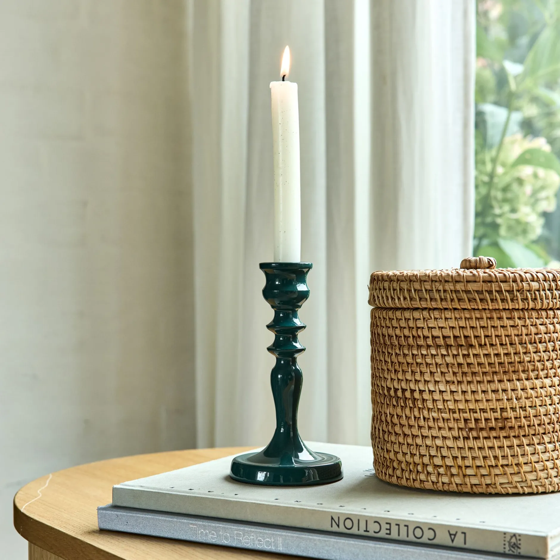 Le bougeoir Harya vient décorer avec élégance une table de Noël. Confectionné en aluminium, ce bougeoir arbore une silhouette vintage, inspirée des bougeoirs anciens. Dans notre coloris bleu figuerolles, ce bougeoir apporte une note de douceur et d’originalité aux fêtes de fin d’année. Il doit être complété d’une bougie flambeau, élancée et élégante. Votre réveillon gagne une dimension plus intimiste et magique.
