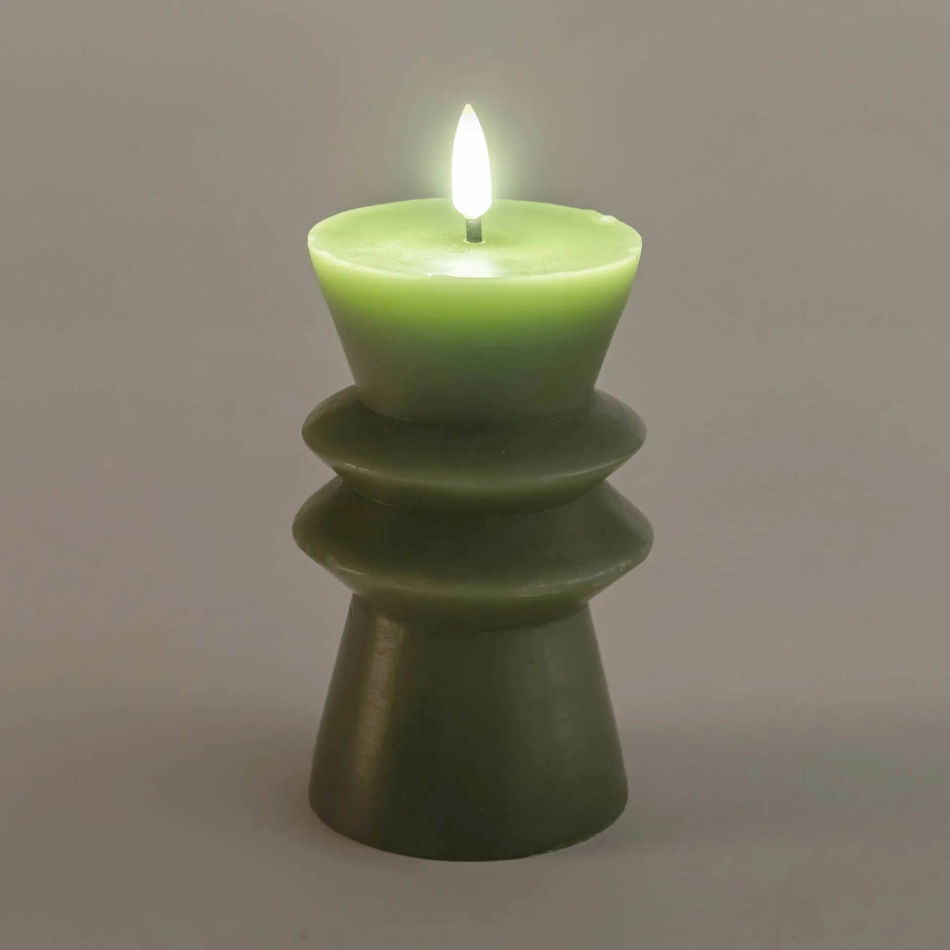 La bougie à LED Naya associe authenticité et praticité. Confectionnée en véritable cire de paraffine, elle affiche une silhouette contemporaine teintée en vert, élégante et moderne. Une petite ampoule en forme de flamme trône au sommet et diffuse une lumière blanc chaud, douce et apaisante. Fonctionnant avec 2 piles AA (non incluses), elle s’allume grâce à un interrupteur discret placé sous la bougie. Pour plus de confort, son minuteur intégré l’éteint automatiquement après 6 heures d’utilisation continue. Un objet déco qui crée une atmosphère chaleureuse sans contrainte.
