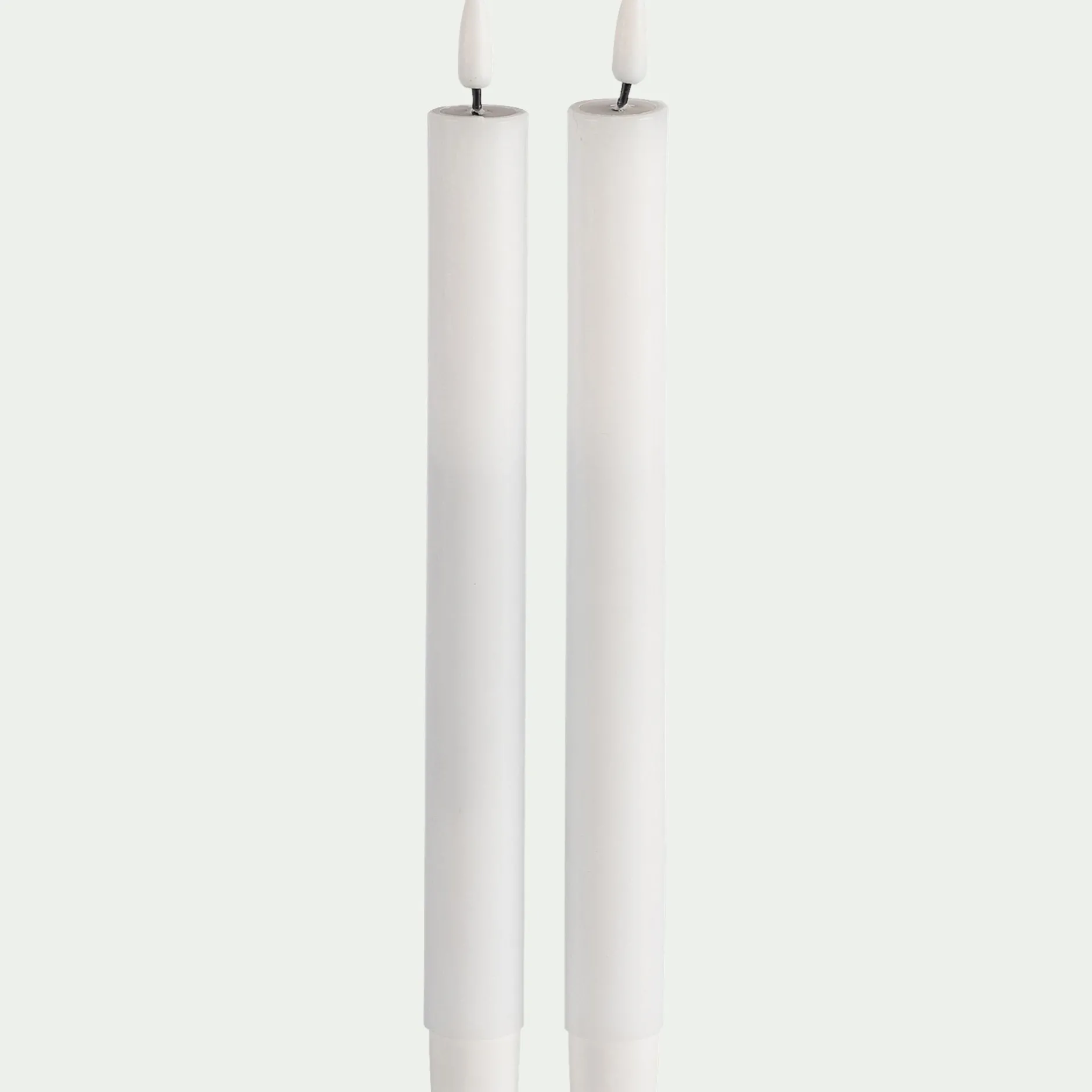 Laissez-vous séduire par ces 2 jolies chandelles à LED. Elles arborent un design élégant et classique, ainsi qu’une technologie LED moderne pour un produit durable. Fabriquée en paraffine, chacune de ces chandelles est munie d’une mèche en plexiglas, contenant une LED blanc chaud pour une lueur de charme. D’une couleur blanche, elles seront la touche finale parfaite pour votre dressage de table lors de repas de fêtes ou autres occasions. Associez ces chandelles LED à piles avec les chandeliers appropriés afin de créer un bel élément déco pour votre table.