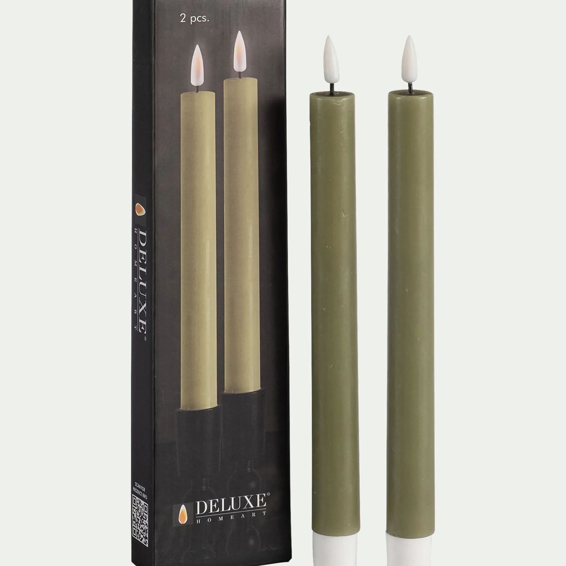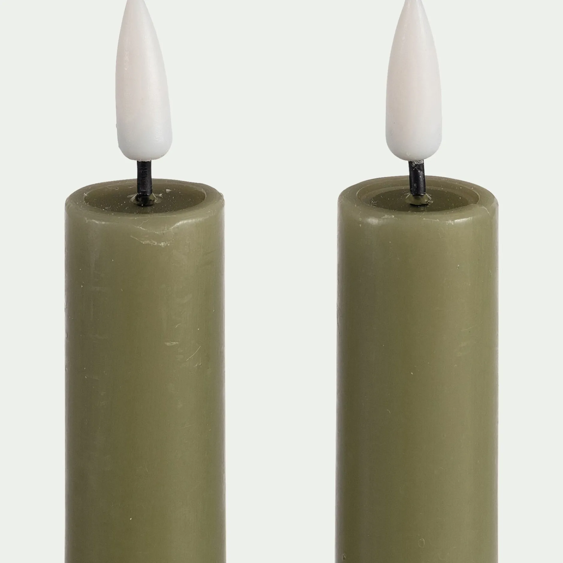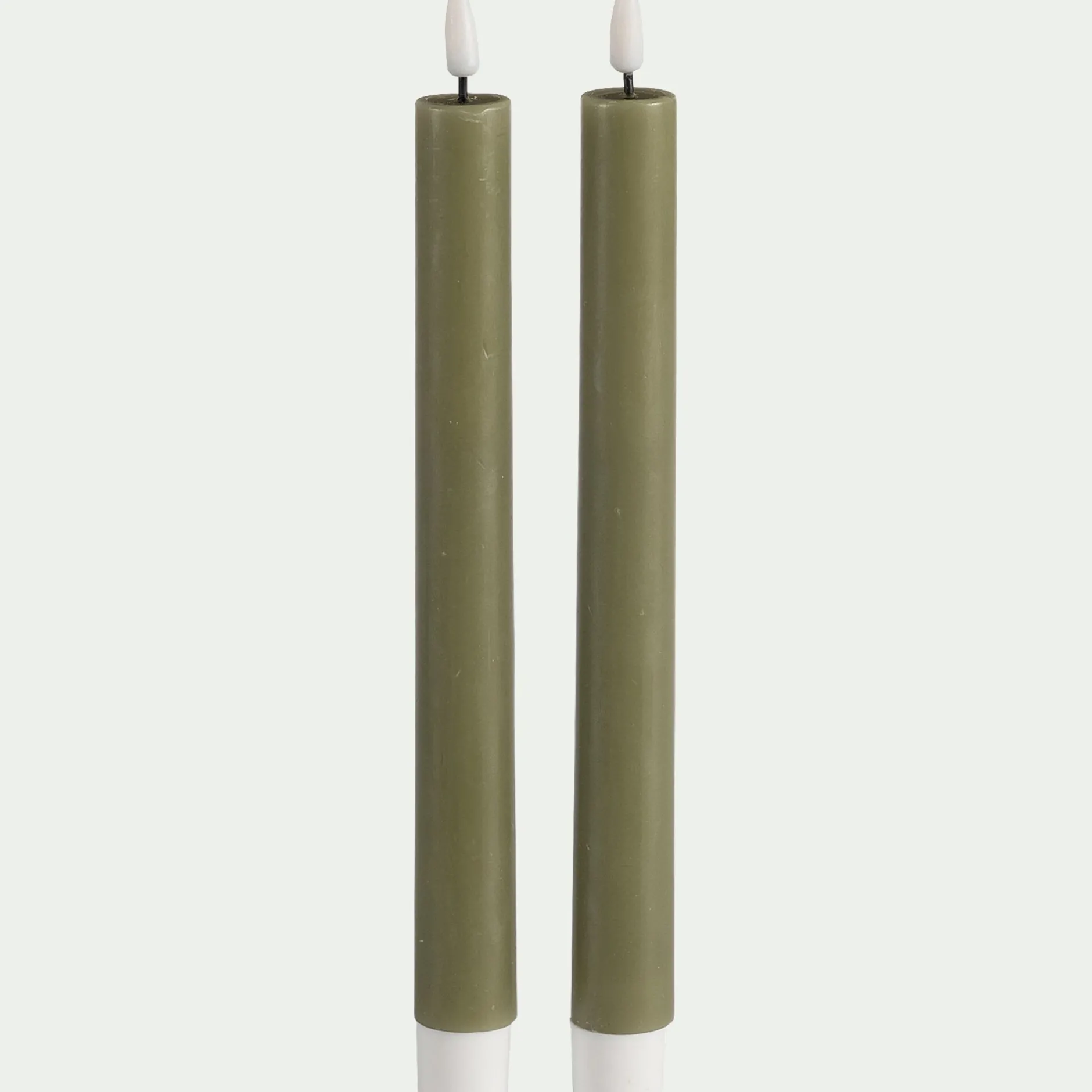 Découvrez ce joli lot de chandelles à LED. Elles arborent un design élégant et classique, ainsi qu’une technologie LED moderne pour un produit durable. Fabriquée en paraffine, chacune de ces chandelles est munie d’une mèche en plexiglas, contenant une LED blanc chaud pour une lueur de charme. De couleur verte, c’est la touche parfaite pour votre dressage de table lors de repas de fêtes ou autres occasions. Combinez ces chandelles LED à piles avec les chandeliers qui conviennent afin de créer un bel élément déco pour votre table.