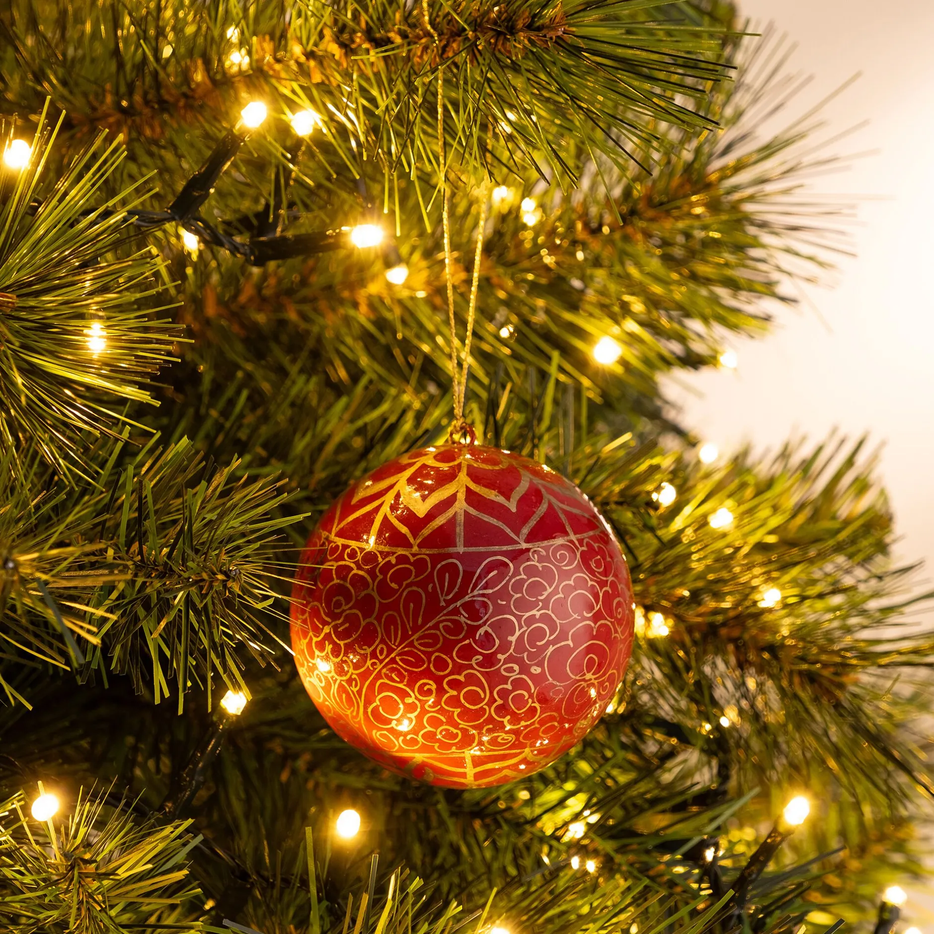 Boule De Noël*alinea Boule de Noël à motif en papier mâché peinte à la main D7cm – Rouge
