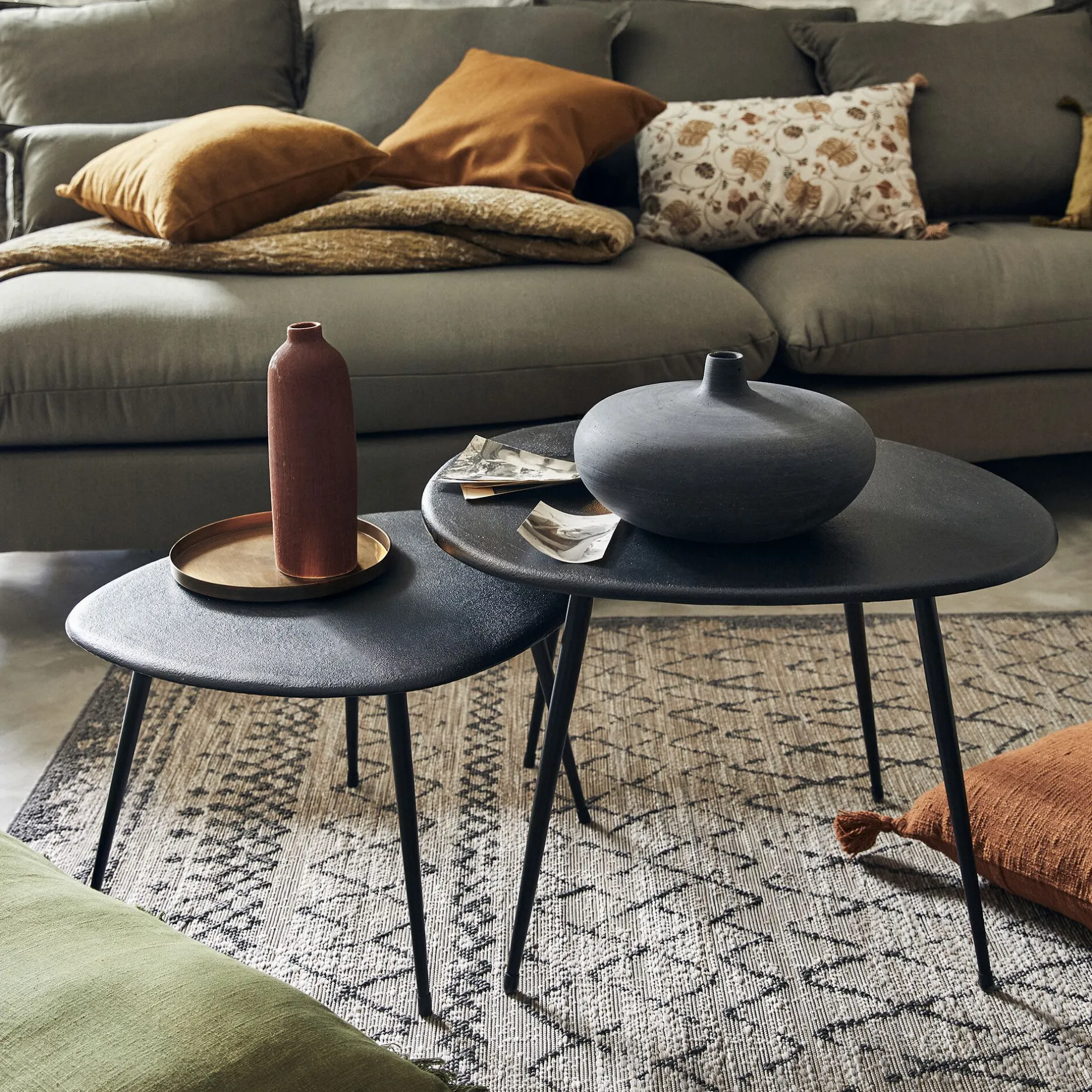 Idéales pour donner du relief et du volume à votre séjour, ces deux tables basses arborent un look contemporain et brut. En fonte d’aluminium, un matériau robuste, elles offrent un design original et un joli plateau. Disposez-les sur un beau tapis devant votre sofa et profitez d’agréables moments dans votre pièce de vie.