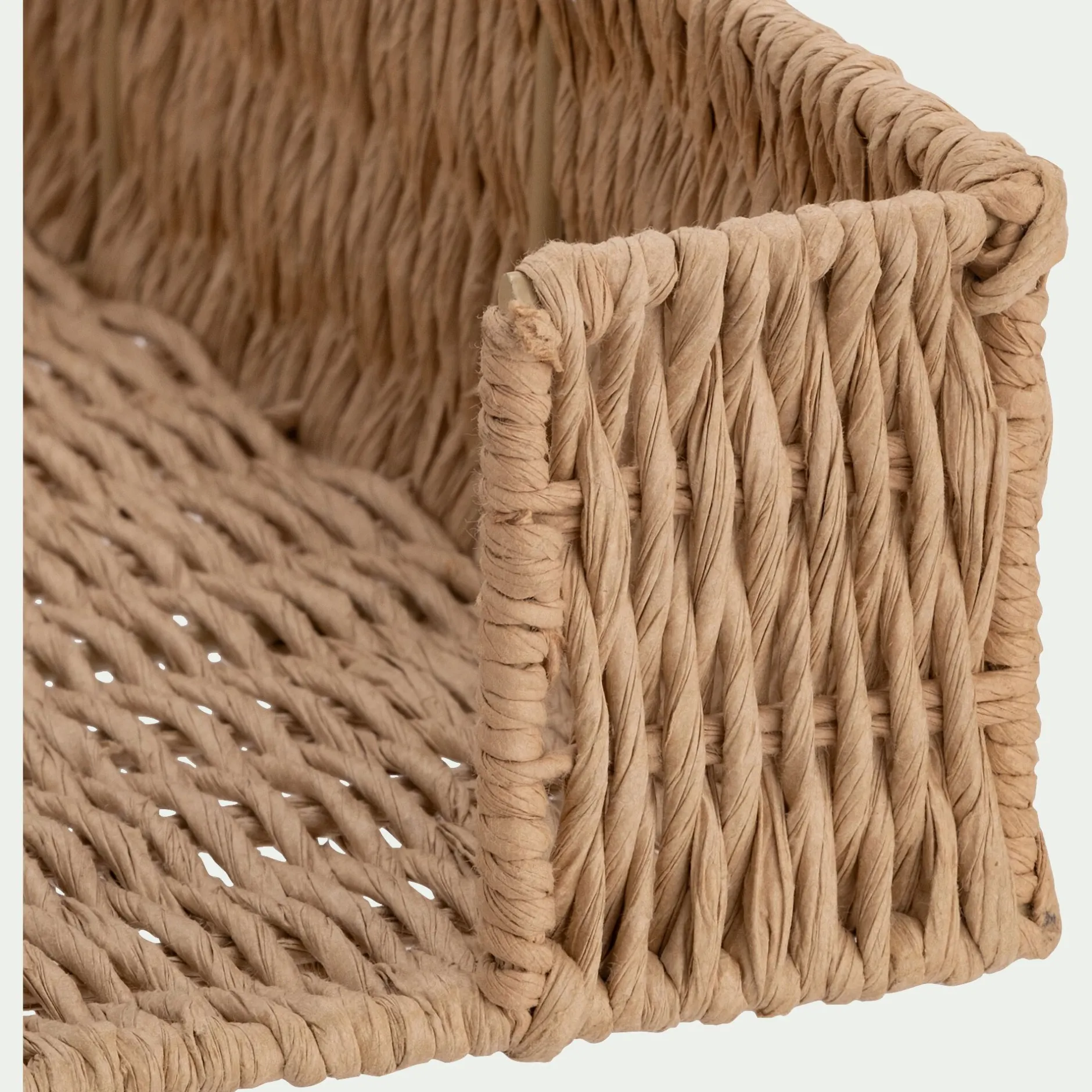 Ce porte-document à plat accueille facilement des feuilles, dossiers ou pochettes au format A4 grâce à ses 31,5 cm de long. Fabriqué en papier rigide, il mise sur un coloris naturel pour apporter une touche douce et authentique au bureau. Pratique pour garder les documents bien ordonnés tout en ajoutant une note déco discrète.