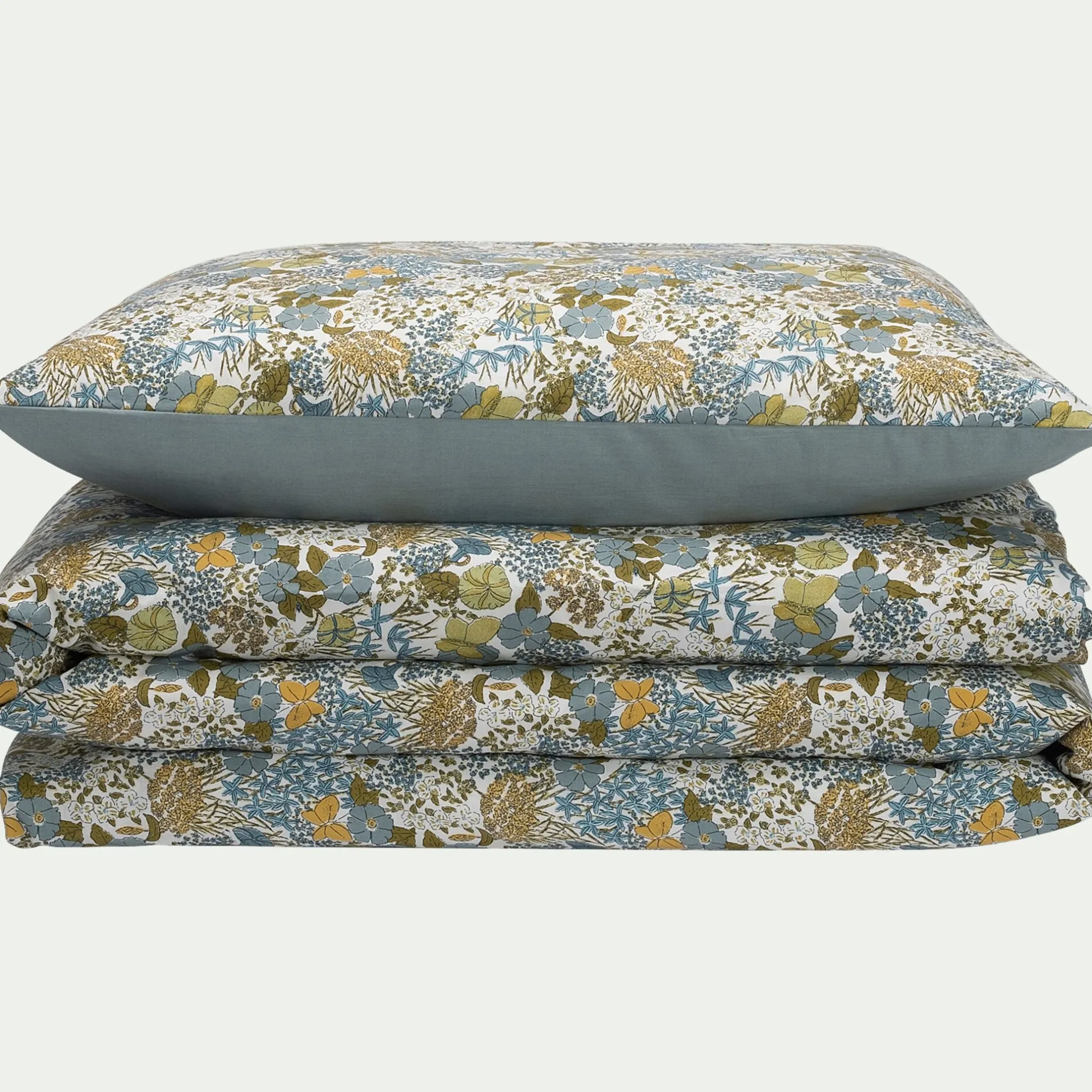 Butine est une très jolie parure de lit pour enfant en coton et réversible pour créer un univers unique dans la chambre à coucher. D’un côté, découvrez des motifs champêtres empreints de poésie et de nature. Des fleurs des champs et autres végétaux se mêlent joyeusement et rappellent le fameux motif Liberty, un classique du textile, ici remis au goût du jour en version alinea mini. Vous pourrez la retourner pour profiter d’un lit d’un joli ton bleu qui apportera de la douceur à la décoration de la pièce. Cette parure est composée d’une housse de couette en 140×200 cm et d’une taie d’oreiller en 65×65 cm. Elle offre une grande douceur au toucher et accompagnera chaque nuit les petits pour un sommeil rempli de beaux rêves.