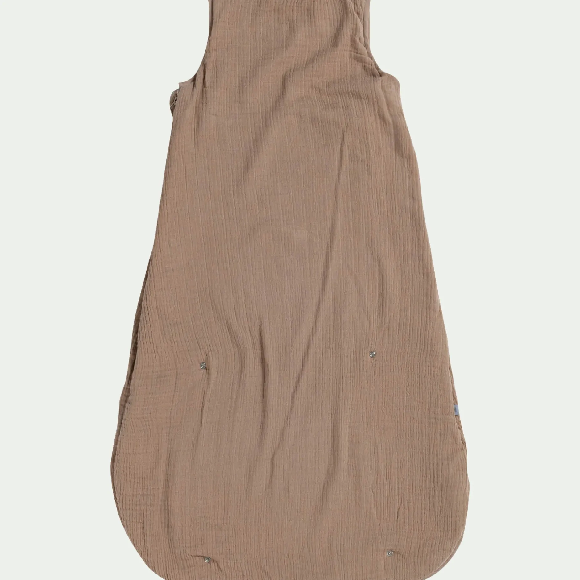 Cette gigoteuse pour bébé, d’un doux coloris marron noisette neutre, allie confort et praticité. Confectionnée au Portugal, elle associe une gaze de coton bio légère en surface à un intérieur en coton bio, pour une douceur optimale et une chaleur assurée grâce à un garnissage polyester de 80 g/m². Sa fermeture zippée facilite l’habillage tandis que les boutons-pression aux épaules et au bas permettent d’adapter la longueur pour accompagner la croissance de bébé. Les finitions soignées, avec une délicate broderie et un biais uni, ajoutent une touche élégante et épurée à ce cocon sécurisant et naturel.
