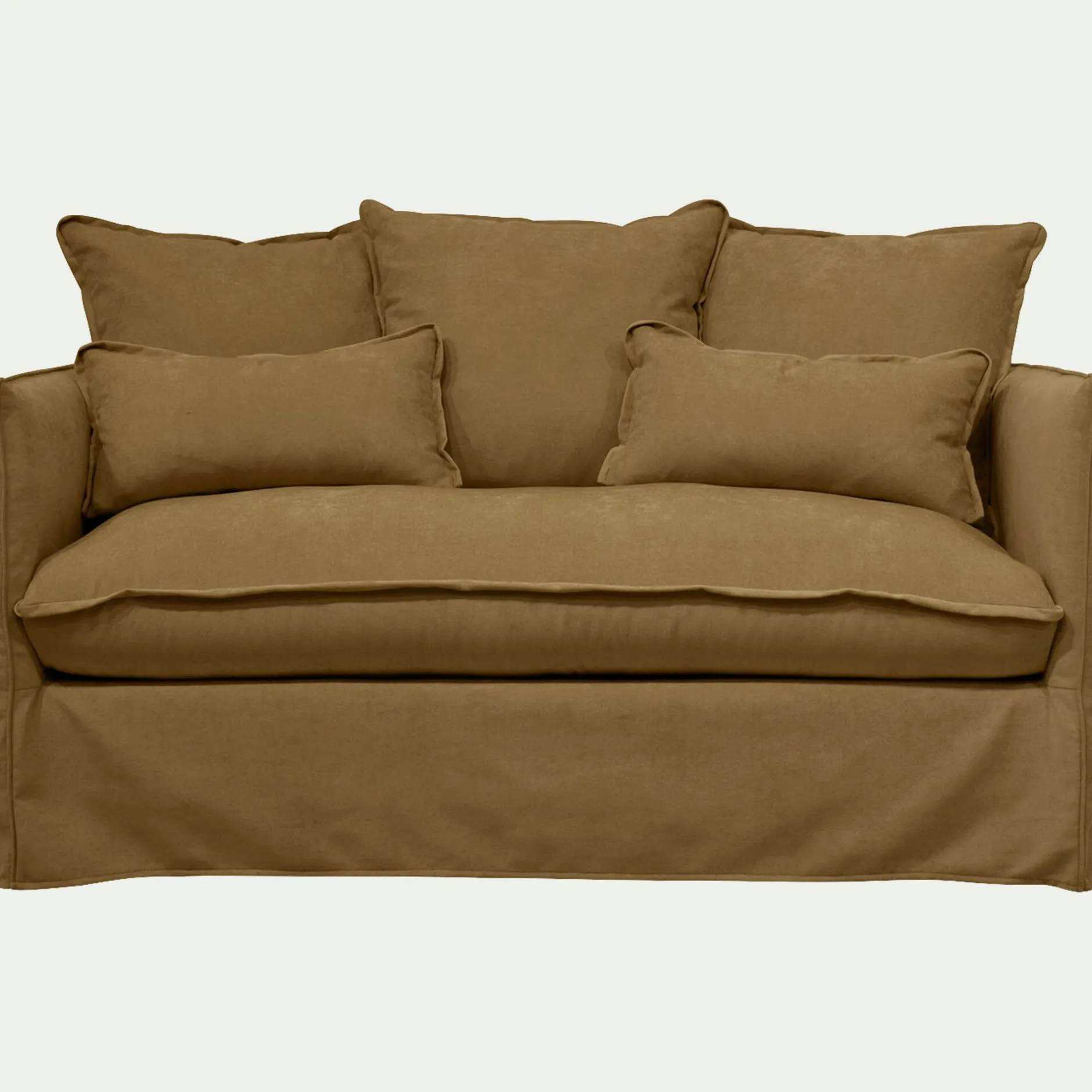 Élégant et accueillant, ce canapé 2 places habille le salon d’une allure raffinée. Ses coussins moelleux et son assise confortable invitent à la détente au quotidien, tandis que son coloris bronze diffuse une lumière douce et chaleureuse dans la pièce. Pratique, il se transforme en couchage occasionnel de 120×188 cm, idéal pour recevoir avec confort et simplicité. Conçu et fabriqué en France, dans des ateliers proches de Bourges, ce canapé convertible incarne le savoir-faire local et l’exigence de qualité à la française.