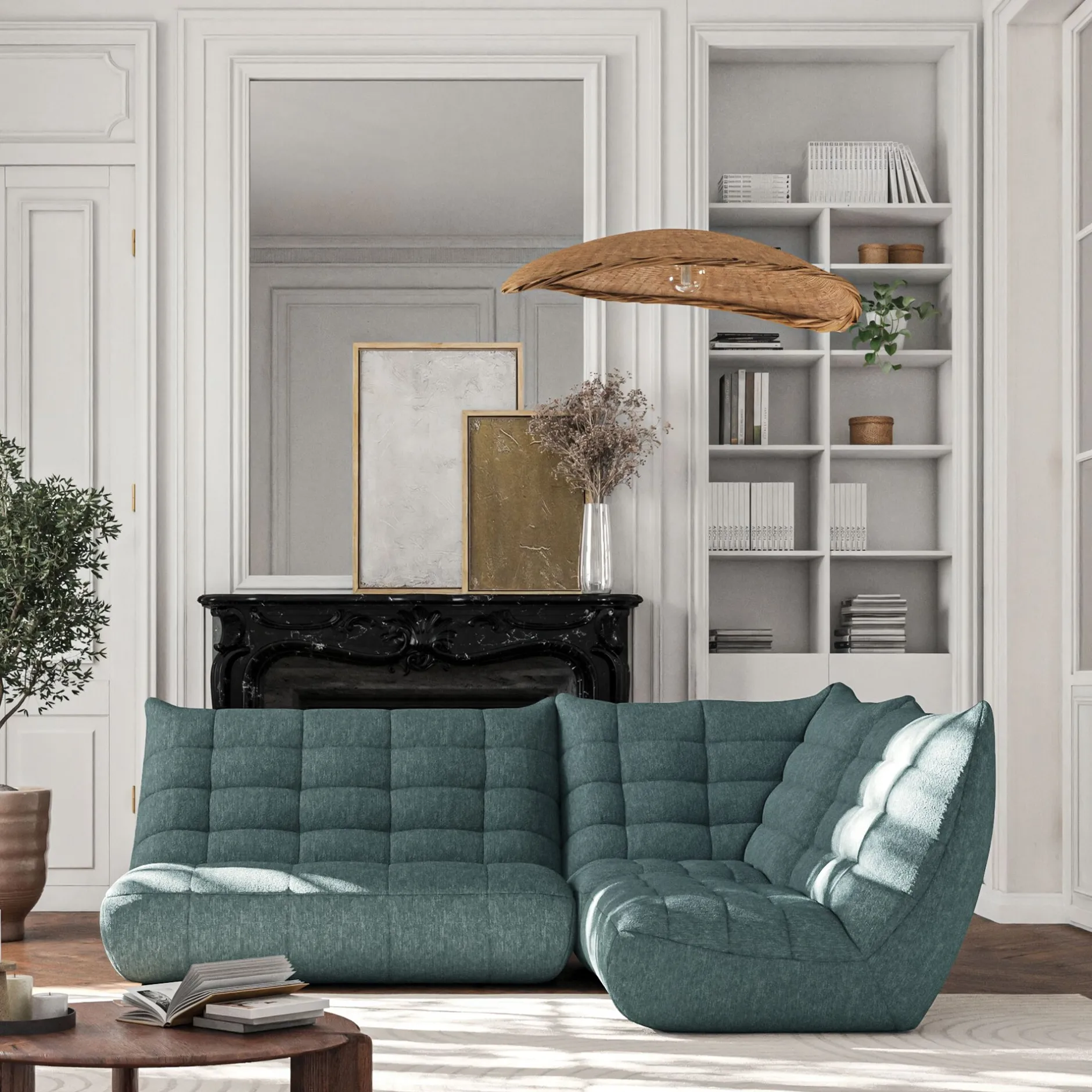 Ce canapé 3 places à tout pour plaire. Sa forme aux rondeurs généreuses apporte une ambiance chaleureuse et un confort douillet. Son esthétisme donnera un style tendance à votre salon d’intérieur. Par sa couleur bleu calaluna, il pourra se marier à tous les styles de décoration. Fabriqué par des mains expertes du métier, cet élément est intégralement conçu en Europe. Parce qu’alinea a à coeur de vous satisfaire, cette gamme propose un large choix d’éléments, rendant celle-ci modulable à souhait. Vous pourrez ainsi mixer les tissus, les formes et les couleurs à votre guise et vous permettra de faire varier et faire vivre votre salon à votre image.
