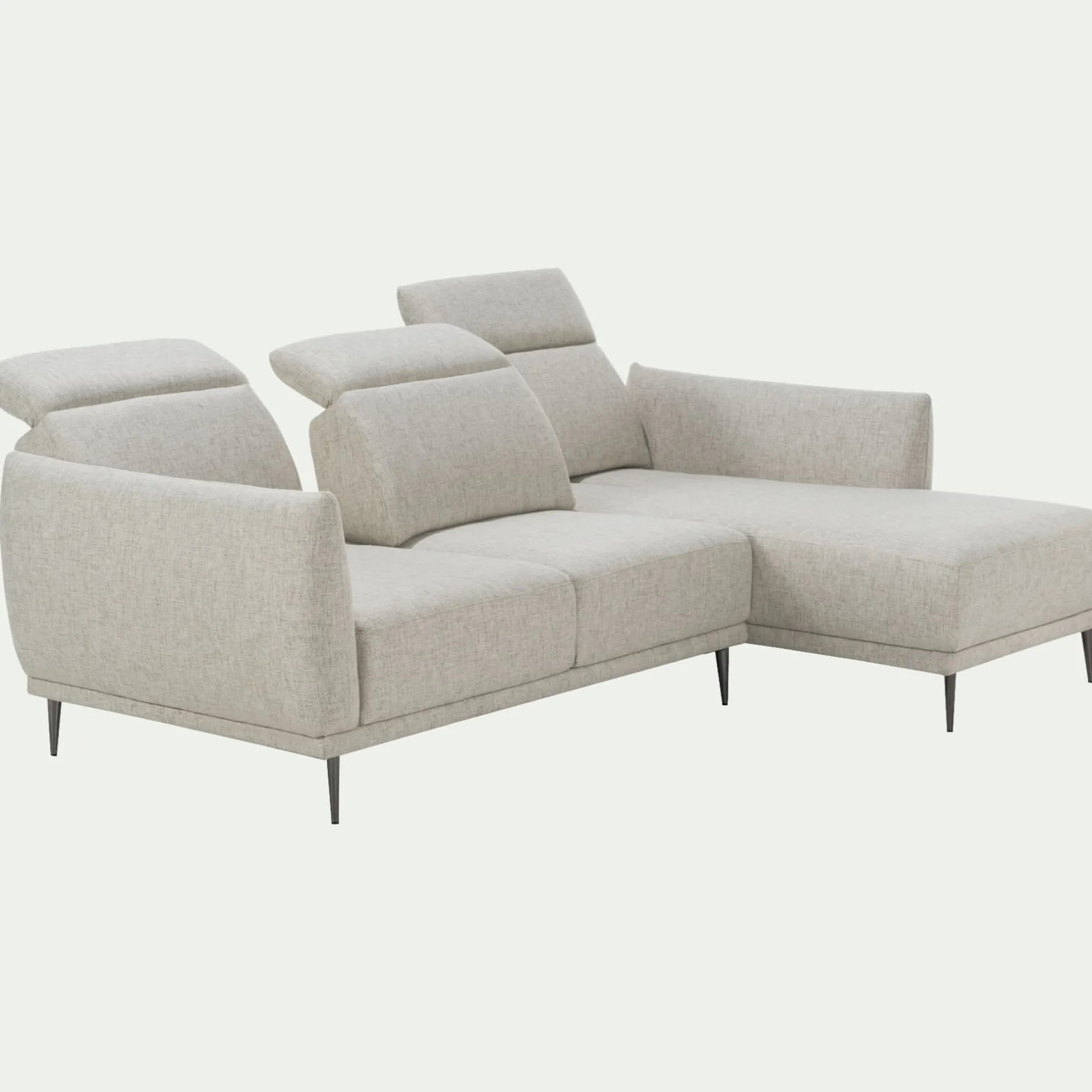 Optez pour ce canapé d’angle droit 3 places fabriqué en Roumanie. Il arbore un design sobre et chic, ainsi qu’une couleur intemporelle beige roucas qui s’accordera avec charme à la décoration de votre salon. Du confort, une assise profonde et généreuse, grâce à un système de dossier qui peut reculer, Marko est un beau canapé qui conviendra parfaitement comme pièce maîtresse de votre pièce de vie. De plus, vous pouvez relever les têtières pour pouvoir être bien installé devant la télé ou lire un livre. Un canapé à la fois déco et d’une qualité exceptionnelle, c’est un meuble qui saura vous séduire.