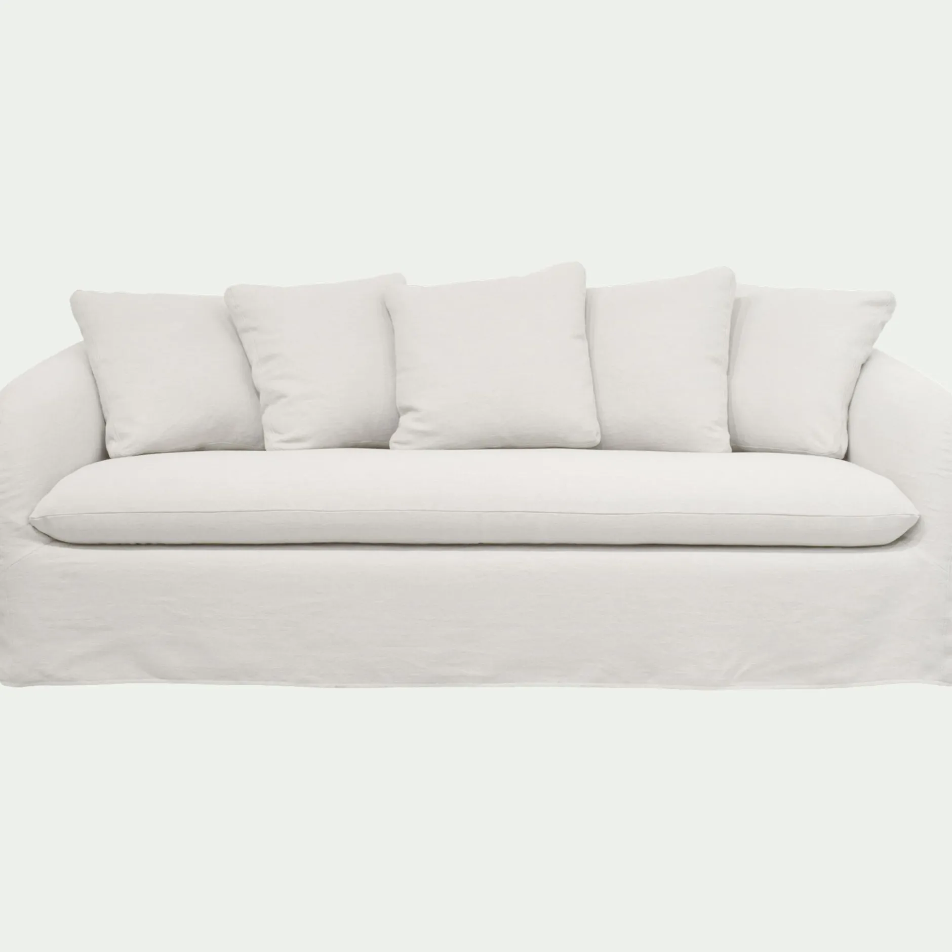 Le canapé Marcel est une ode à la ville de Marseille et à son patrimoine. Son nom fait écho à la provence en rendant hommage à sa culture. Conçu pour 4 personnes, ce canapé au design singulier donne de l’allure à votre salon tout en offrant une grande assise. Ses multiples coussins font de lui un canapé plus douiller et chaleureux. Son tissu en lin, son design en rondeur et sa jupe lui donnent une élégance incontestable. Le lin, un tissu naturel symbole de pureté et de confort, vous offre une douceur qui vous bercera au fil des saisons. Extrêmement résistant et réputé pour ses qualités thermorégulatrices, il vous permettra de vous lover au mieux tout au long des saisons et pendant plusieurs années. Sa fonction convertible dévoile un confortable matelas qui pourra accueillir deux personnes occasionnellement. En lin blanc, ce canapé noble est un éloge à la Méditerranée.