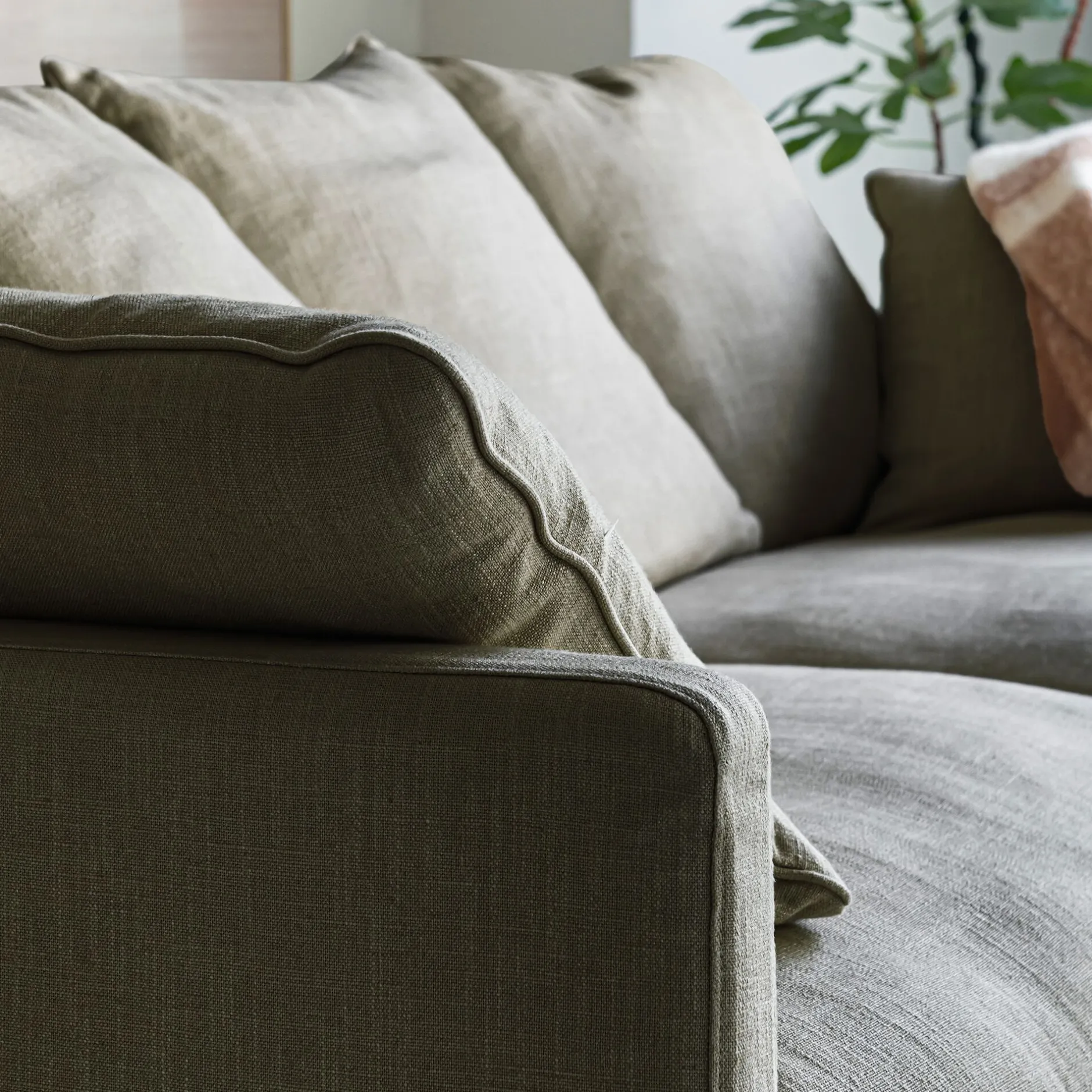 Découvrez ce charmant canapé 4 places convertible en lin et en viscose qui allie style et confort. En effet, Simona est un canapé fabriqué en Italie qui offre une assise confortable et des lignes toutes en rondeur pour un canapé qui a de l’allure tout en invitant à la détente. Convertible, il est doté d’un matelas en 160x185cm et d’un sommier électro-soudé afin de profiter d’un couchage d’appoint de qualité. Aménagez une pièce de vie tendance et accueillante grâce à ce beau canapé au style affirmé et raffiné. Ici en vert cèdre, une couleurqui évoque la nature et se combine avec tous les styles de déco et de mobilier.