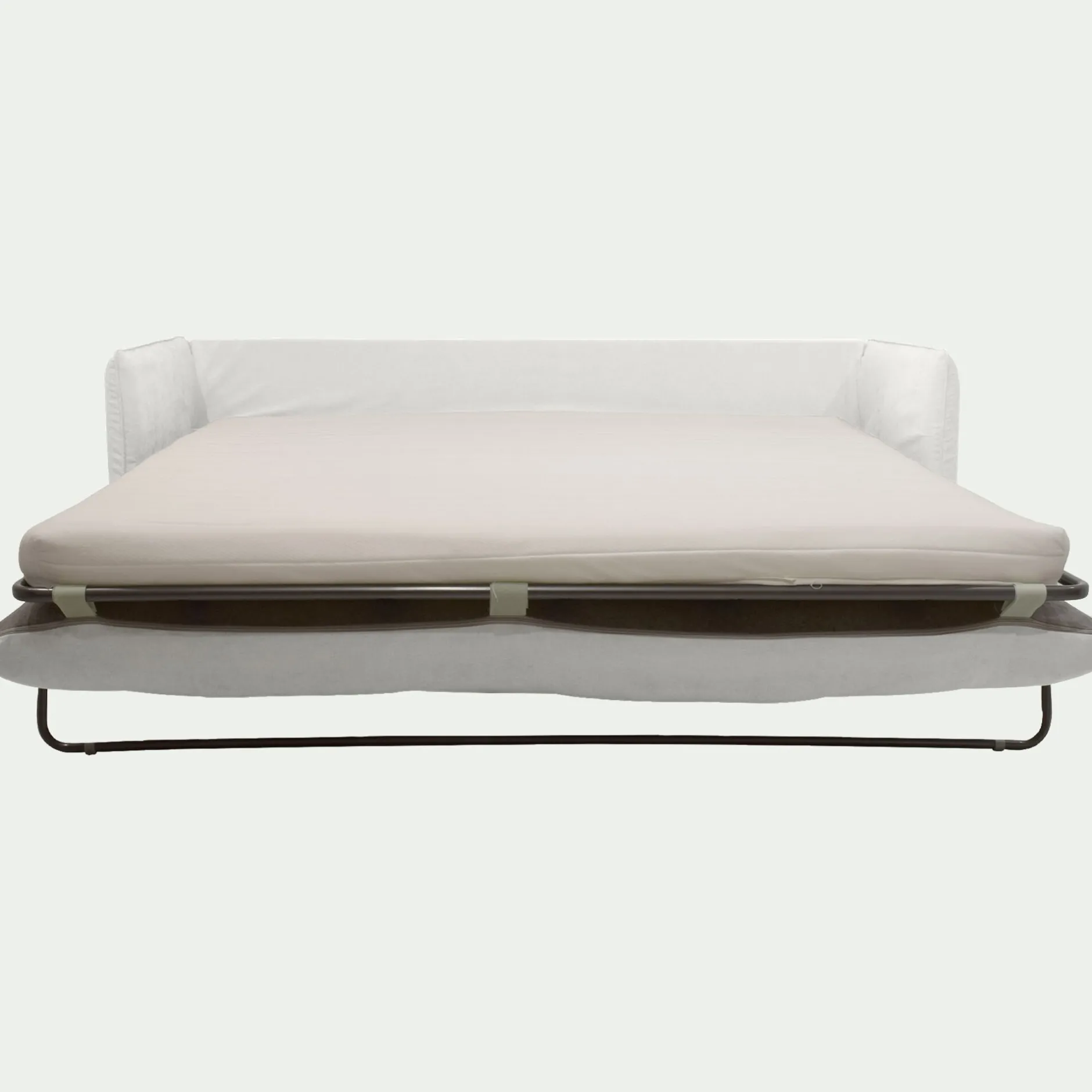 Élégant et accueillant, ce canapé 4 places habille le salon d’une allure raffinée. Ses coussins moelleux et son assise confortable invitent à la détente au quotidien, tandis que son coloris blanc écru diffuse une lumière douce et chaleureuse dans la pièce. Pratique, il se transforme en couchage occasionnel de 160×188 cm, idéal pour recevoir avec confort et simplicité. Conçu et fabriqué en France, dans des ateliers proches de Bourges, ce canapé convertible incarne le savoir-faire local et l’exigence de qualité à la française.