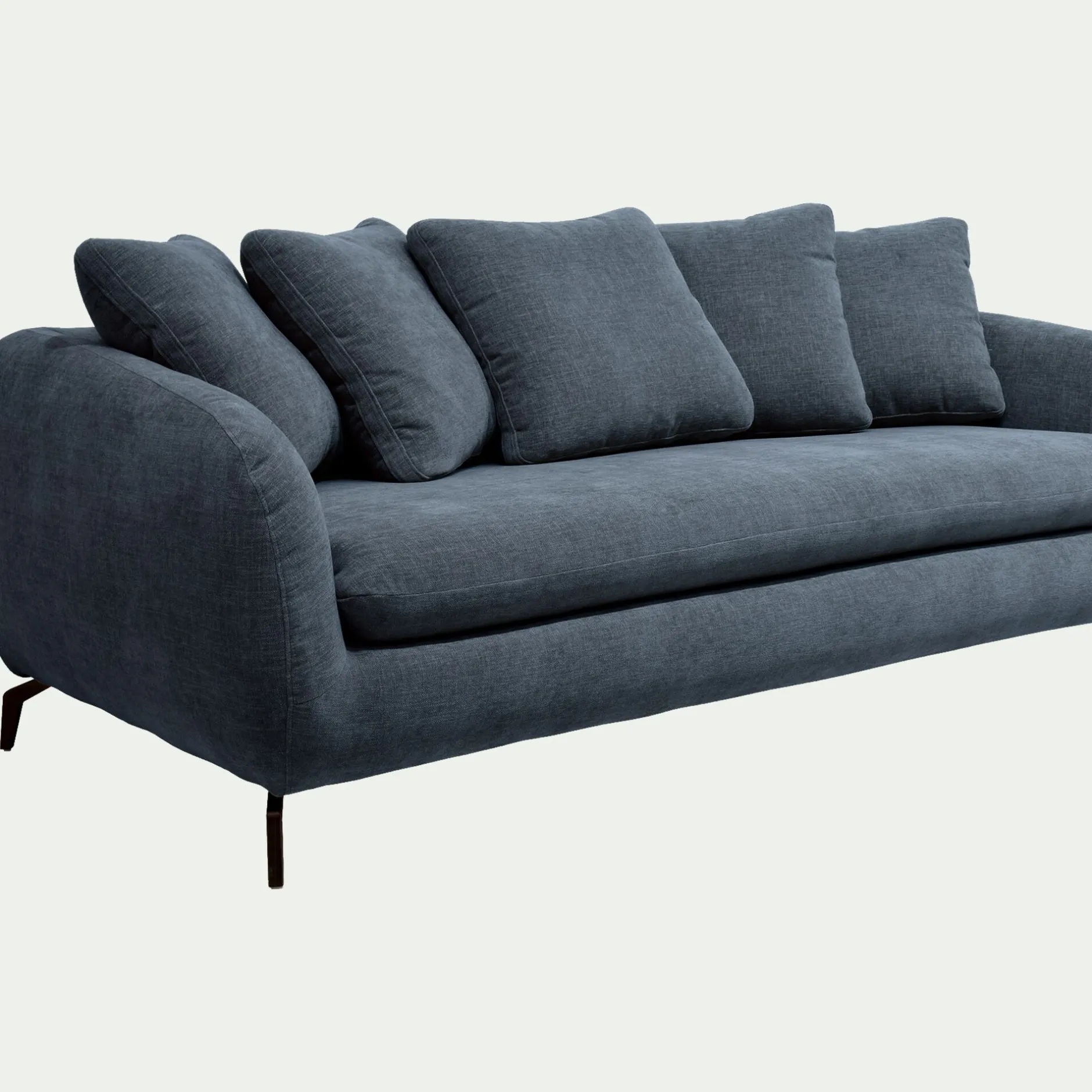Un joli canapé fixe en tissu pour profiter agréablement de votre salon. Un look contemporain et accueillant, sublimé par un piétement original en acier noir. Vous apprécierez la forme du dossier et des accoudoirs qui vous offrent un maintien optimal de votre dos pour un confort d’assise exceptionnel. Un canapé fabriqué en France, dans des ateliers proches de la ville de Bourge, qui incarne l’excellence du savoir-faire français. Un coloris bleu qui apporte une note lumineuse et chaleureuse à votre décoration de salon.