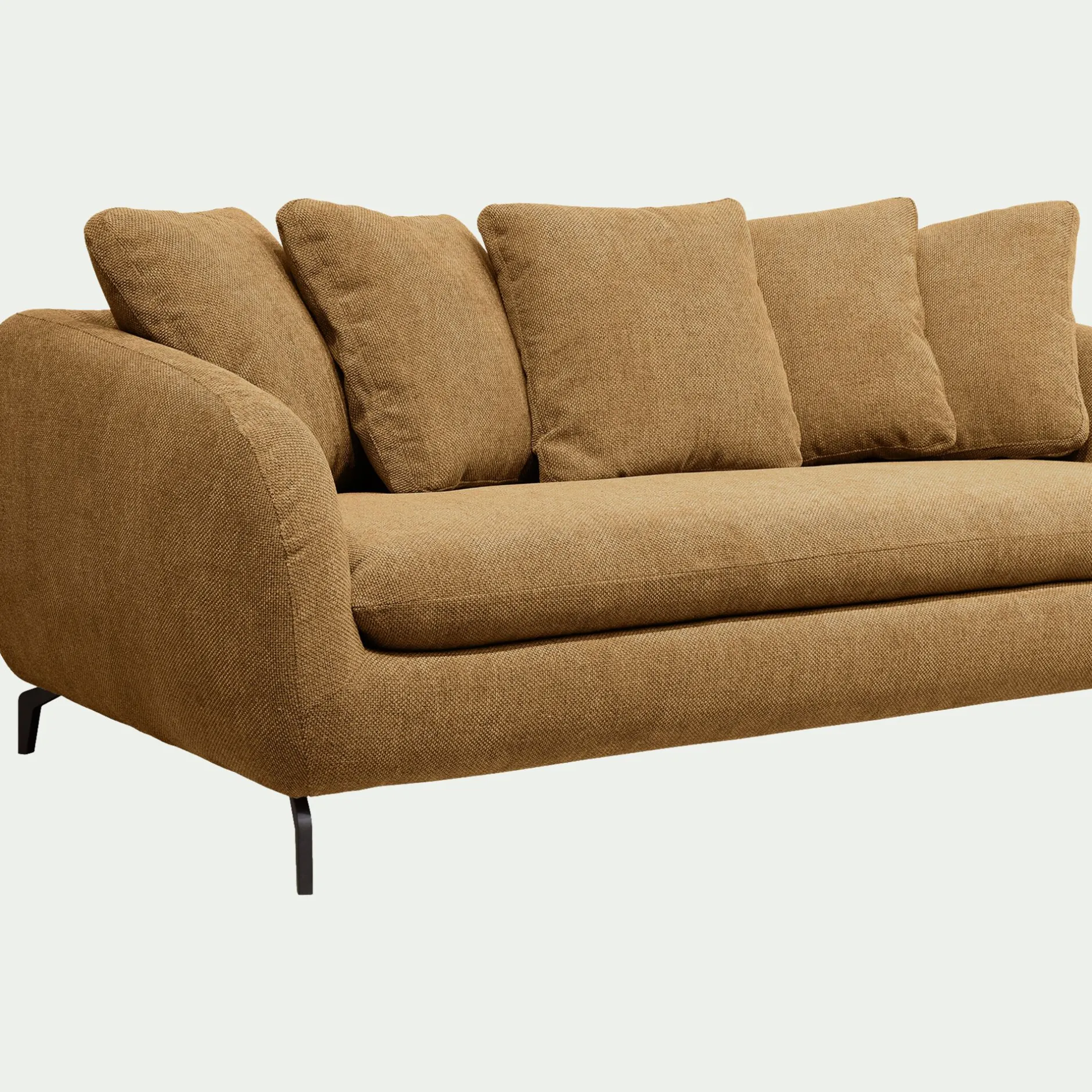 Un joli canapé fixe en tissu pour profiter agréablement de votre salon. Un look contemporain et accueillant, sublimé par un piétement original en acier noir. Vous apprécierez la forme du dossier et des accoudoirs qui vous offrent un maintien optimal de votre dos pour un confort d’assise exceptionnel. Un canapé fabriqué en France, dans des ateliers proches de la ville de Bourge, qui incarne l’excellence du savoir-faire français. Un coloris bronze qui apporte une note lumineuse et chaleureuse à votre décoration de salon.