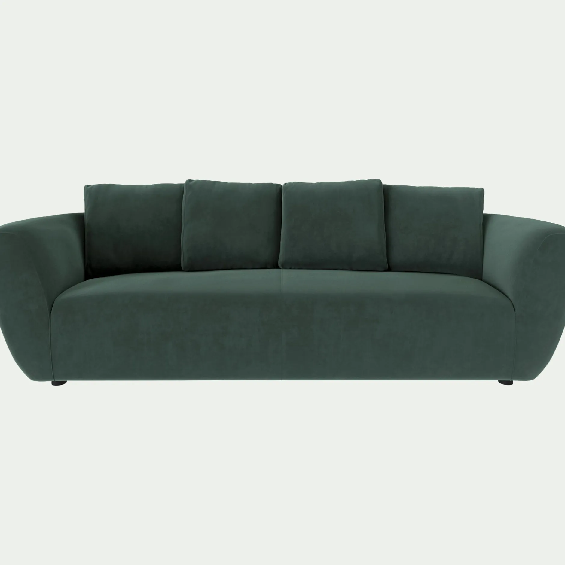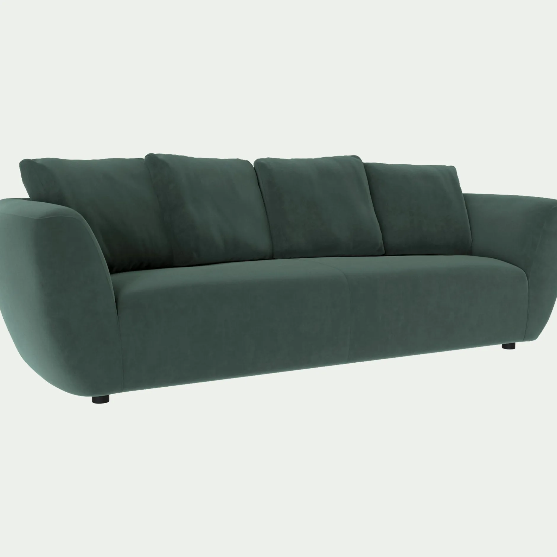 Avec son revêtement en tissu vert, ce canapé 4 places conjugue douceur et élégance. Son tissu velours met en valeur chaque courbe, apportant une touche raffinée à l’espace. Le vert sauge, teinte douce et naturelle, trouve facilement sa place dans une décoration intemporelle, qu’elle soit contemporaine, bohème ou vintage. Son assise moelleuse invite à la détente, tandis que son dossier partiellement garni de plumes d’oie enveloppe de confort. Pensé pour durer, ce canapé fixe repose sur une structure en bois certifié FSC. Ses coussins de dos déhoussables facilitent l’entretien. Une pièce fabriquée en Italie, où design et confort s’unissent avec subtilité.