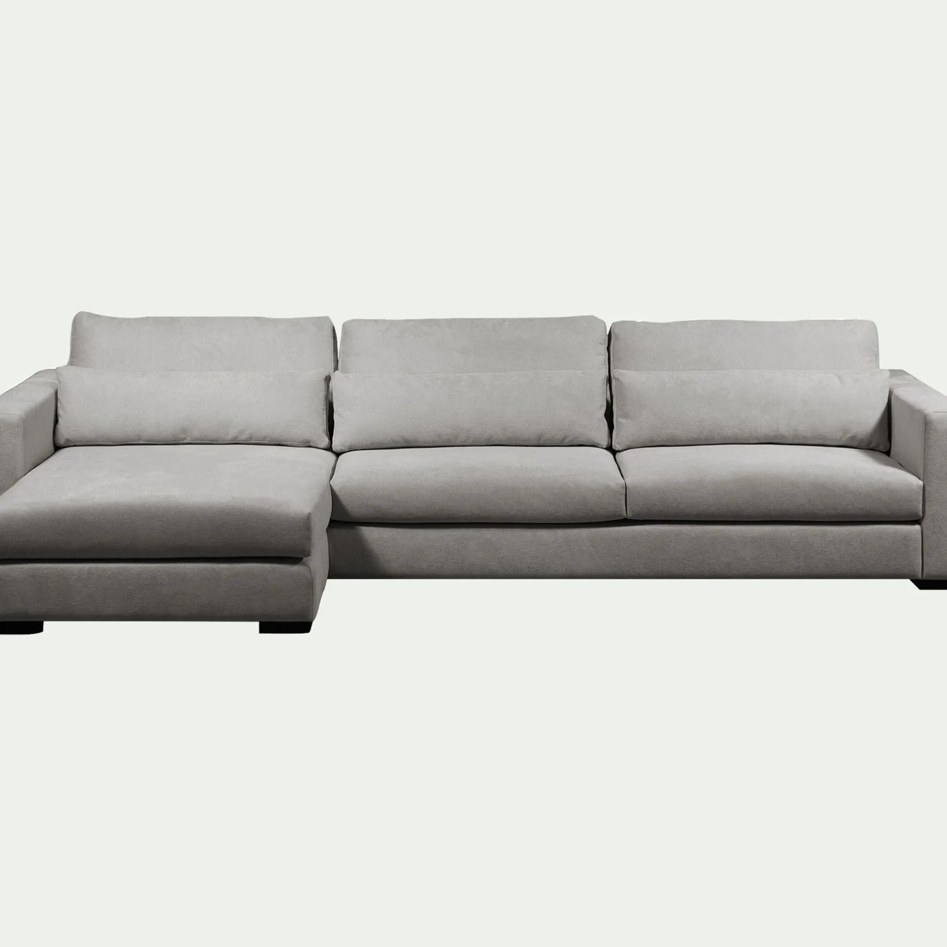 Spacieux et raffiné, le canapé d’angle Batis avec angle à gauche transforme le salon en un espace accueillant et élégant. Sa chaise longue offre un espace idéal pour s’allonger et savourer un véritable instant de détente. Revêtu d’un tissu natté résistant, il allie esthétique intemporelle et durabilité. Son coloris gris clair se marie à différents styles de décoration et d’accessoires, comme un plaid et des coussins. Conçu pour durer, ce canapé fixe repose sur une structure en bois massif, garantissant solidité et stabilité. Il s’impose comme l’élément central du séjour, invitant au partage et à la relaxation.