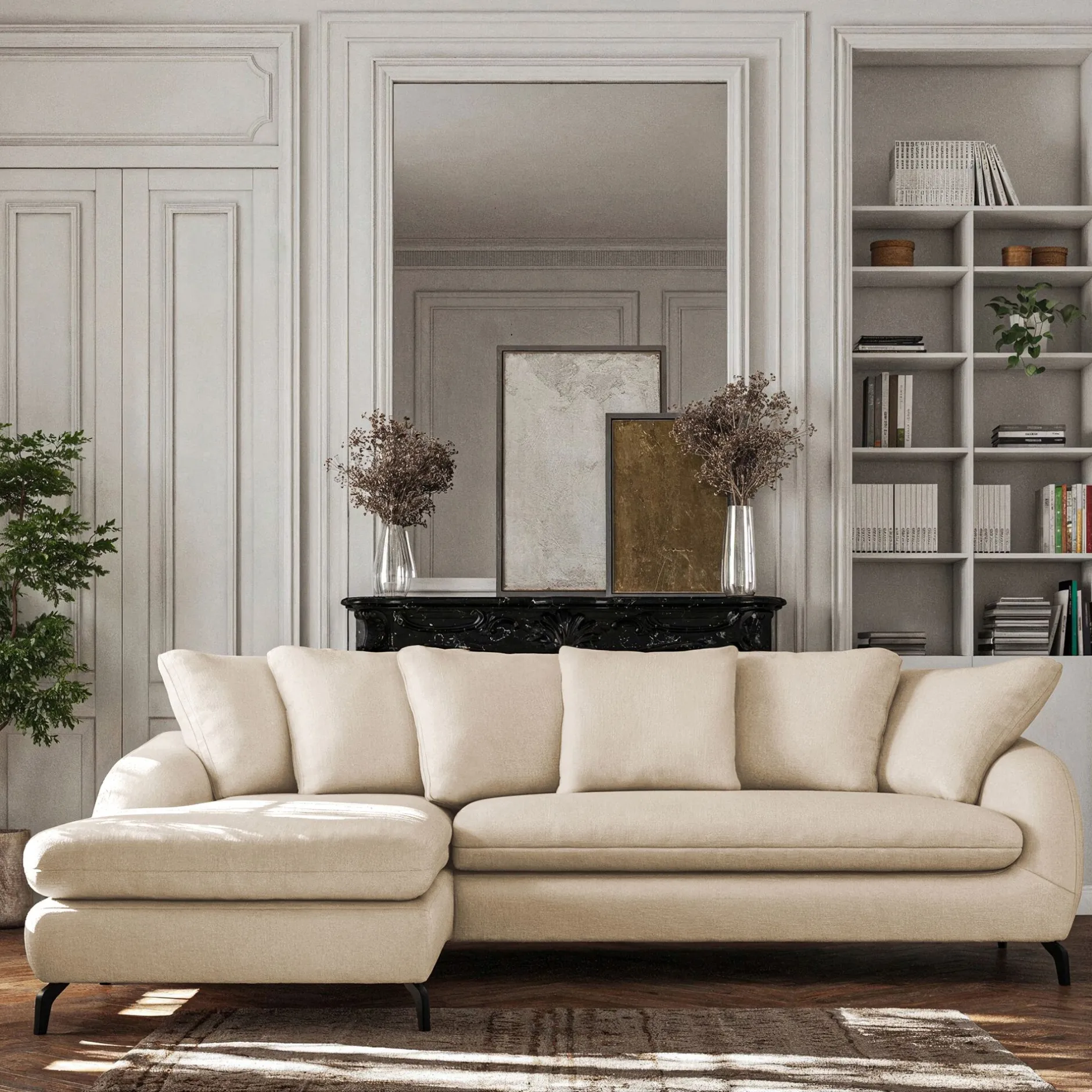 Canapé 4 Places|Canapé Fixe*alinea Canapé d’angle gauche fixe en tissu doux tramé – écru Blanc