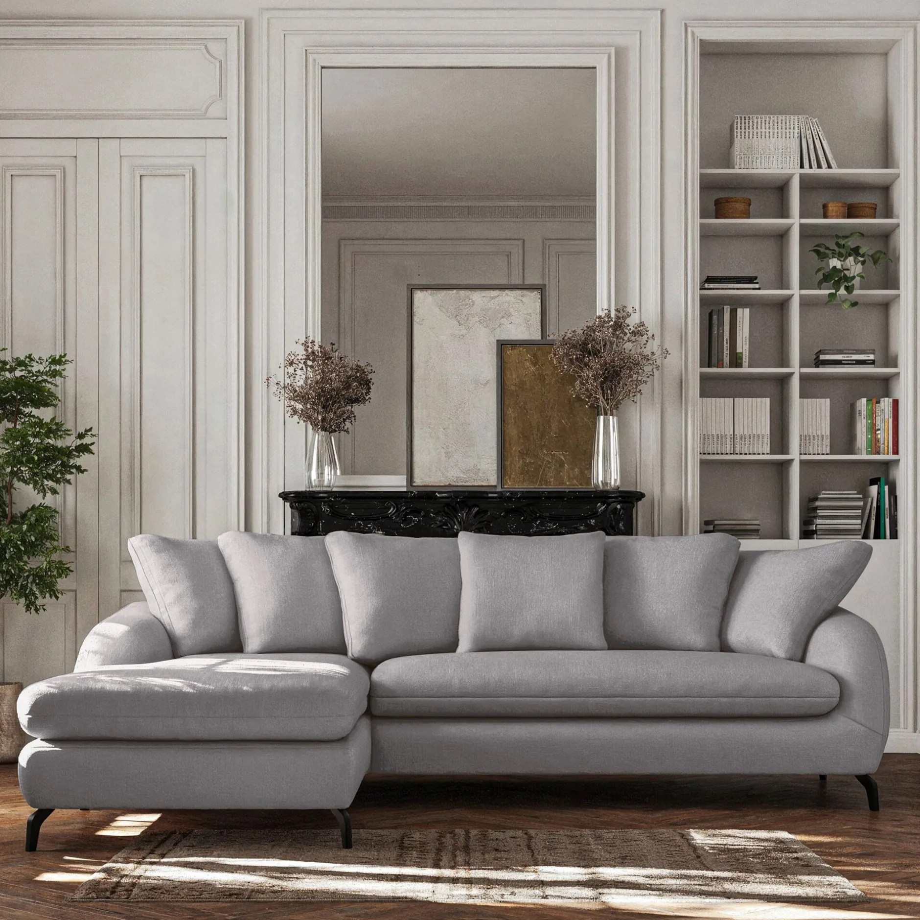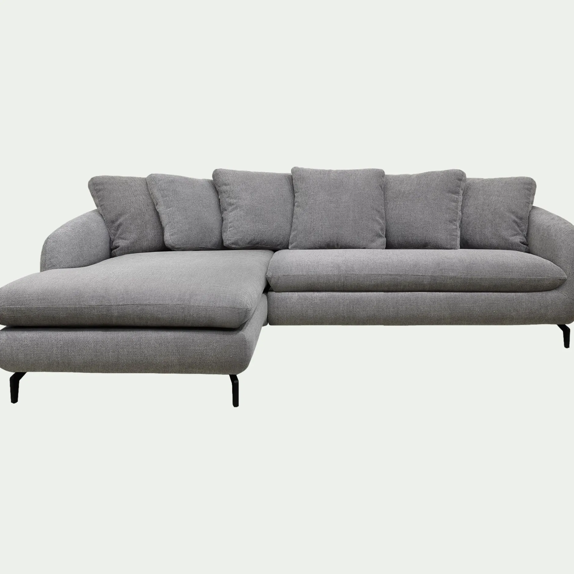Un joli canapé d’angle gauche en tissu pour profiter agréablement de votre salon. Un look contemporain et accueillant, sublimé par un piétement original en acier noir. Vous apprécierez la forme du dossier et des accoudoirs qui vous offrent un maintien optimal de votre dos pour un confort d’assise exceptionnel. Un canapé fabriqué en France, dans des ateliers proches de la ville de Bourge, qui incarne l’excellence du savoir faire français. Un coloris gris ardoise qui apporte une note citadine et raffinée à votre décoration de salon.