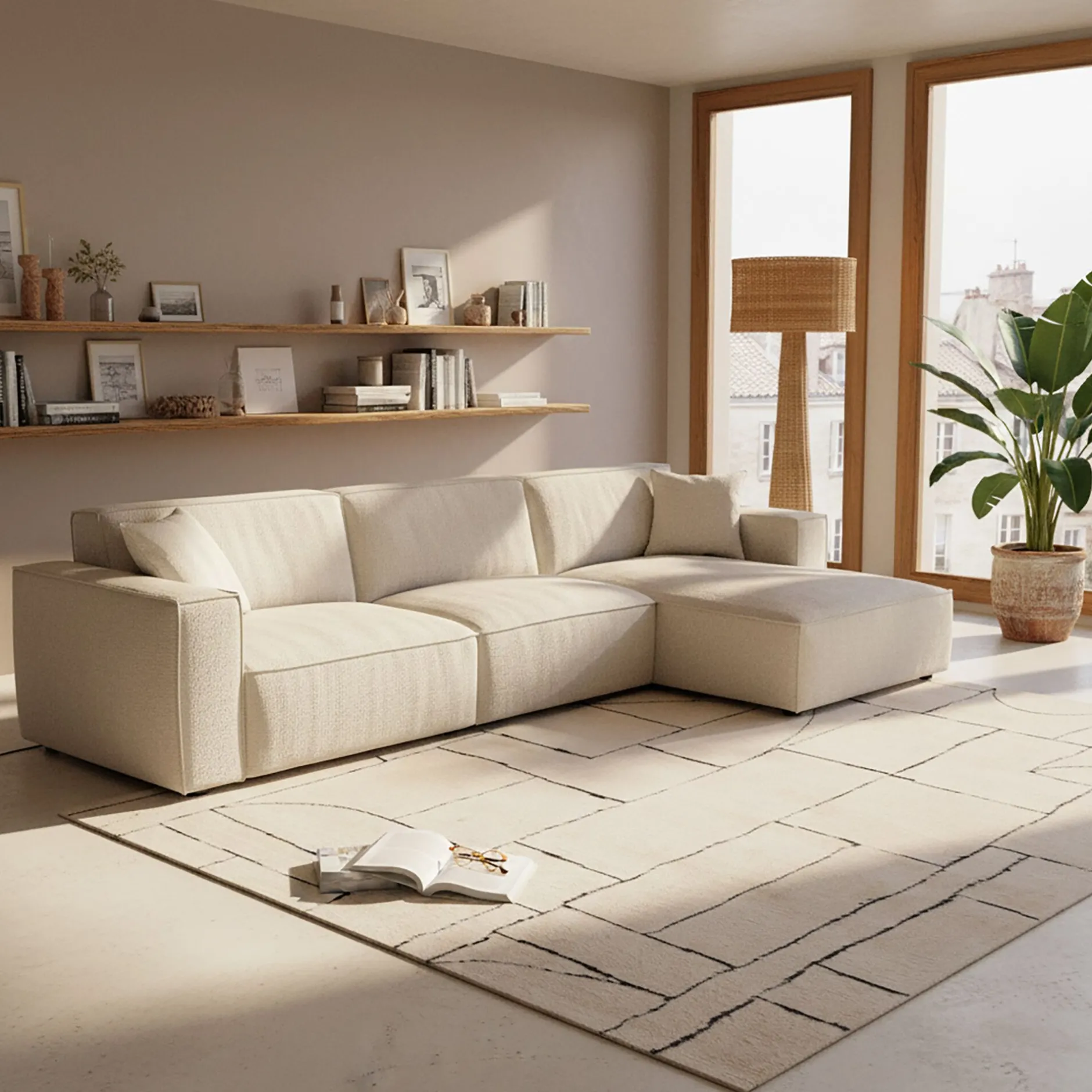 Canapé 4 Places|Canapé Fixe*alinea Canapé grand angle droit fixe en tissu tramé – Beige