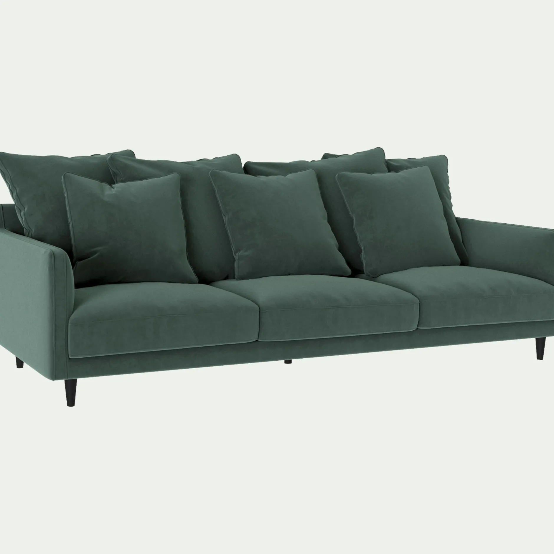 Ce canapé droit 5 places incarne l’élégance italienne dans une version chaleureuse et lumineuse. Revêtu du tissu velvet, au toucher charnu et à l’apparence de velours, il séduit par sa texture délicate et sa douceur exceptionnelle. Son coloris vert sauge adoucit la pièce et insuffle un vent apaisant au décor. Fabriqué à la main en Italie, il témoigne d’un savoir-faire artisanal raffiné. L’assise, généreusement garnie de plumes d’oie, offre un confort moelleux et enveloppant. Monté sur des pieds en hêtre massif, ce modèle entièrement déhoussable marie esthétique et praticité avec brio. Une pièce forte et rayonnante pour sublimer le salon.