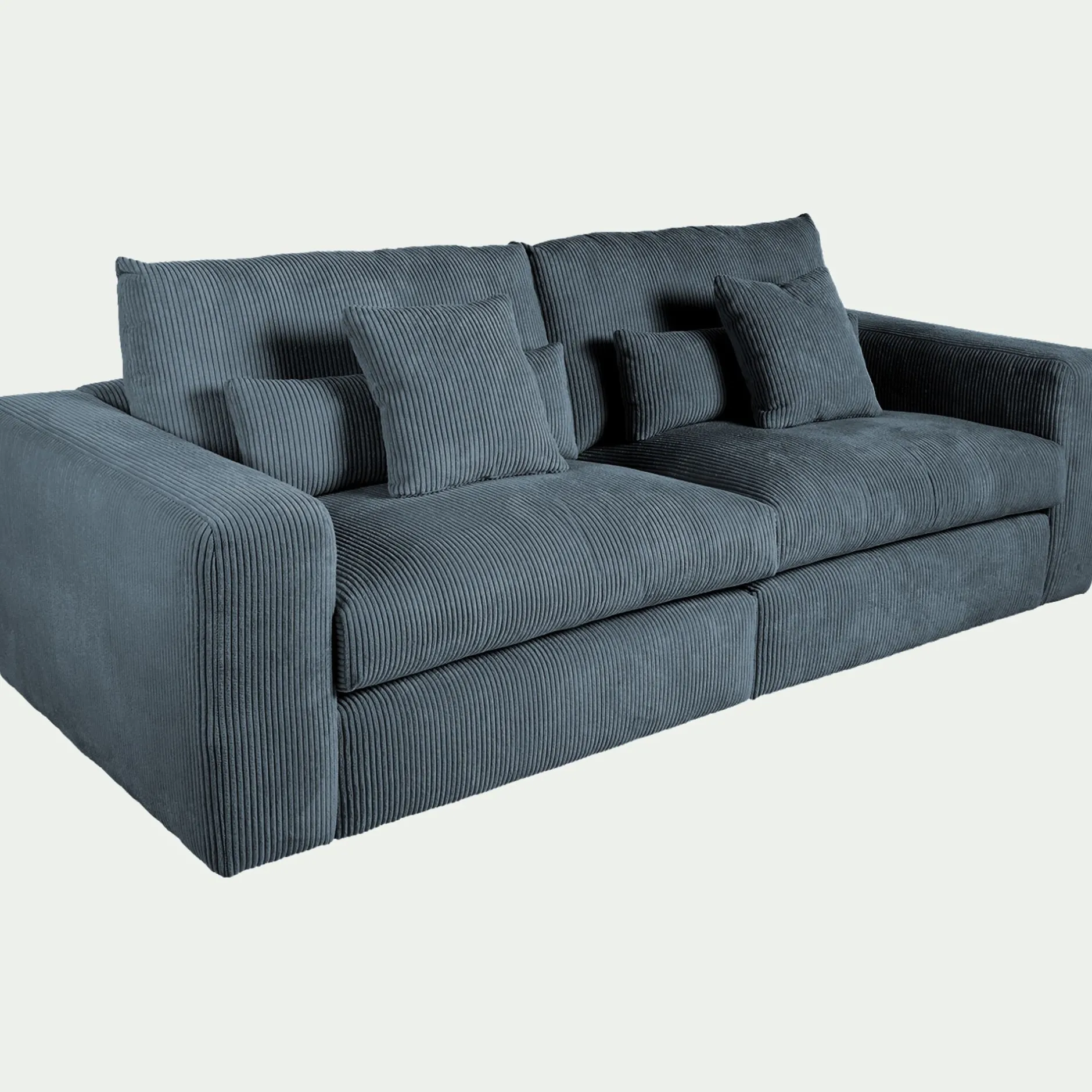 Le canapé Piuma est idéal pour se prélasser dans votre salon. Avec ses grandes assises, ce canapé d’angle droit en velours côtelé vous offre un confort exceptionnel. Il vous permet de vous détendre au coeur de coussins moelleux dans un nuage de douceur renforcé par son tissu délicat. Vous pourrez ainsi recevoir famille et amis lors d’un moment apaisant. Ce canapé fixe 5 places de couleur bleu apporte également une touche design moderne et élégante à votre salon. Son velours côtelé donne un côté cocooning qui vous permet de transformer votre pièce en un espace chaleureux.