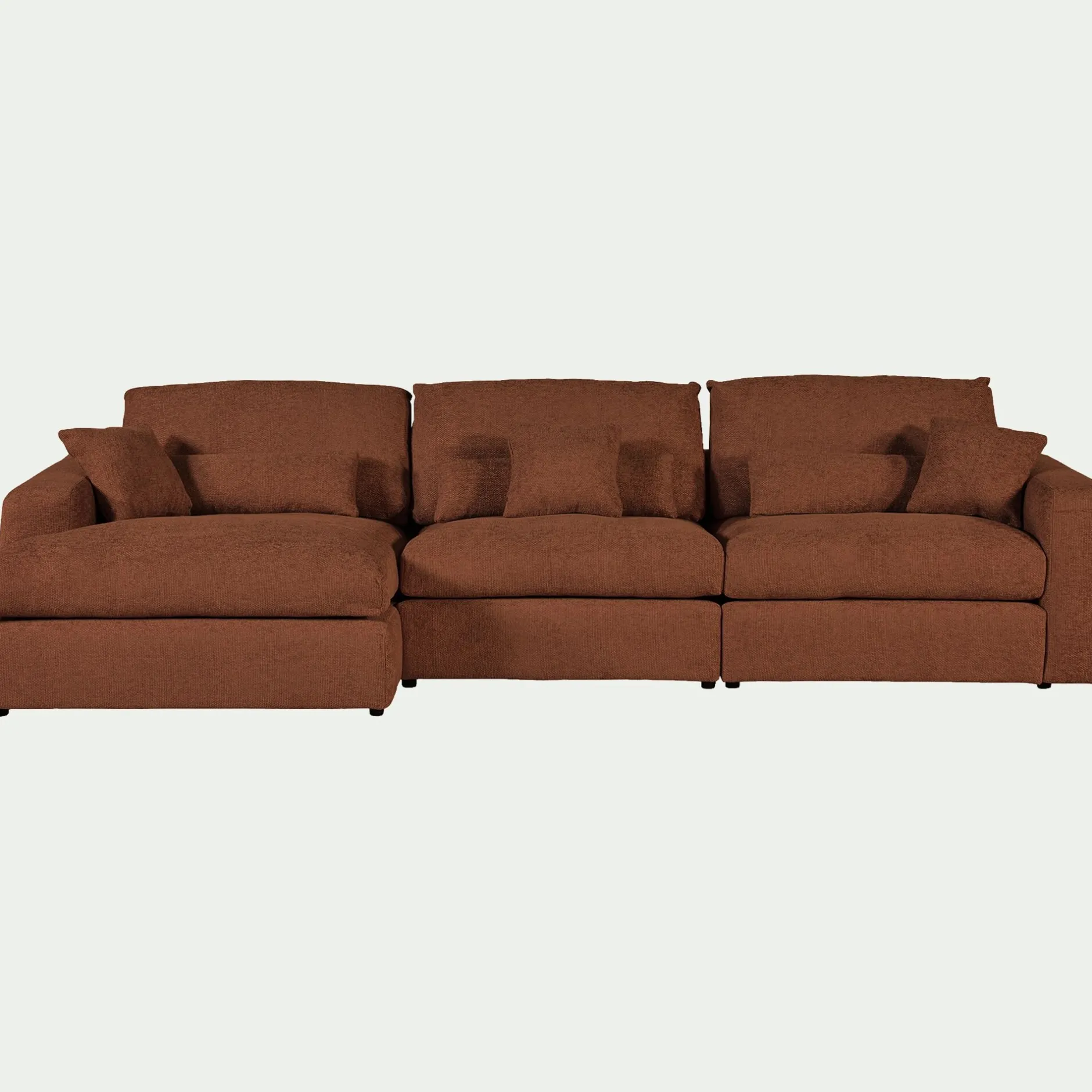 Avec son format généreux 5 places et son angle à gauche, ce canapé d’angle est une invitation aux moments partagés. Son revêtement en tissu chenille, à la fois doux et résistant, enveloppe l’espace d’une chaleur réconfortante. Son coloris brun rustrel, intemporel, s’harmonise avec tous les styles d’intérieur. Pensé pour le confort, ce canapé fixe se compose d’une assise spacieuse, d’un dossier accueillant et de coussins déhoussables pour un entretien facilité. Six coussins décoratifs viennent parfaire l’ensemble, ajoutant une touche cosy. Un canapé idéal pour des instants de détente en famille ou entre amis.
