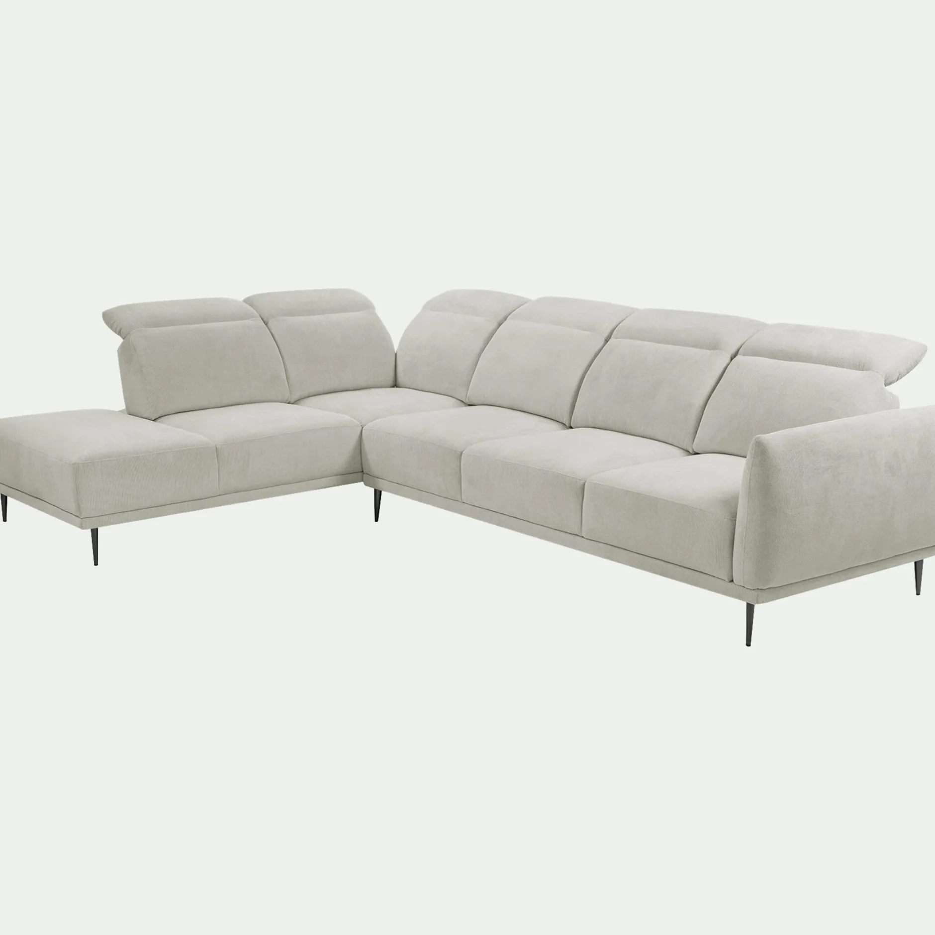 Optez pour ce canapé d’angle gauhe 5 places qui allie un design contemporain à une fonctionnalité ingénieuse. Son revêtement en tissu memphis beige roucas apporte une touche lumineuse et audacieuse à votre salon. Profitez d’un confort sur mesure grâce à son assise profonde et à son système de dossiers qui reculent pour s’adapter à vos envies. Les têtières relevables offrent un soutien optimal pour vos moments de détente devant la télévision ou un bon livre. Ce canapé est une pièce maîtresse qui séduit par sa qualité de fabrication et son allure résolument moderne.