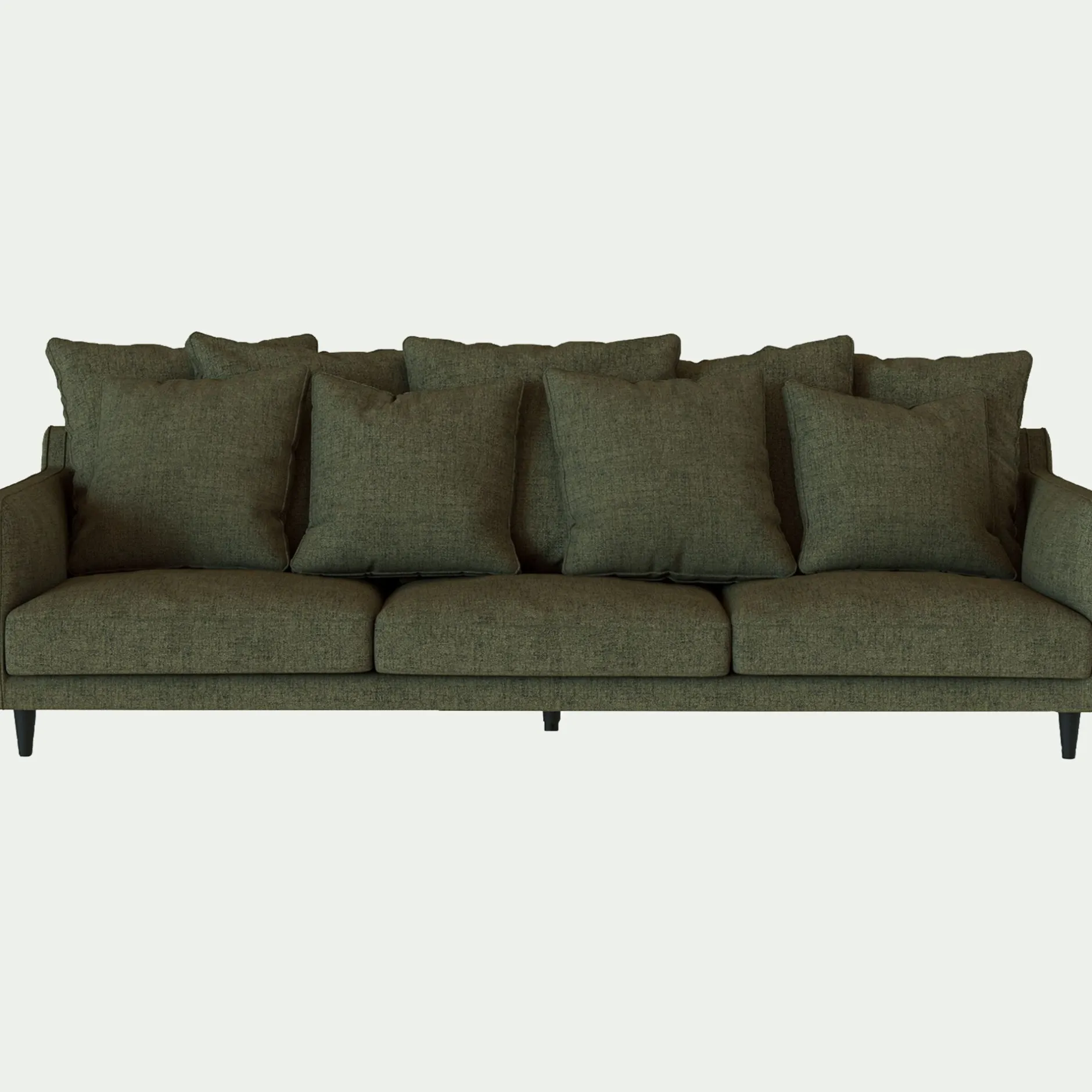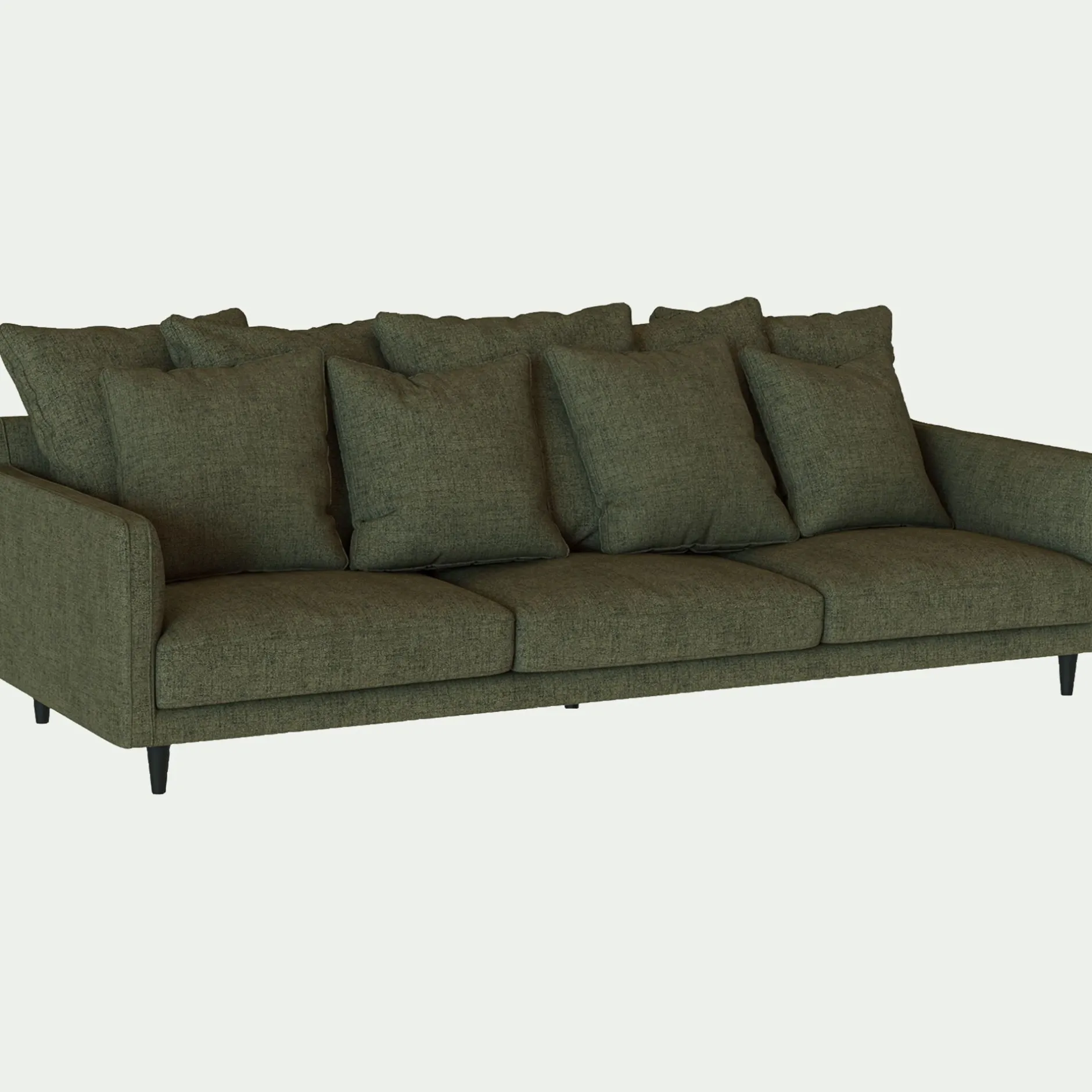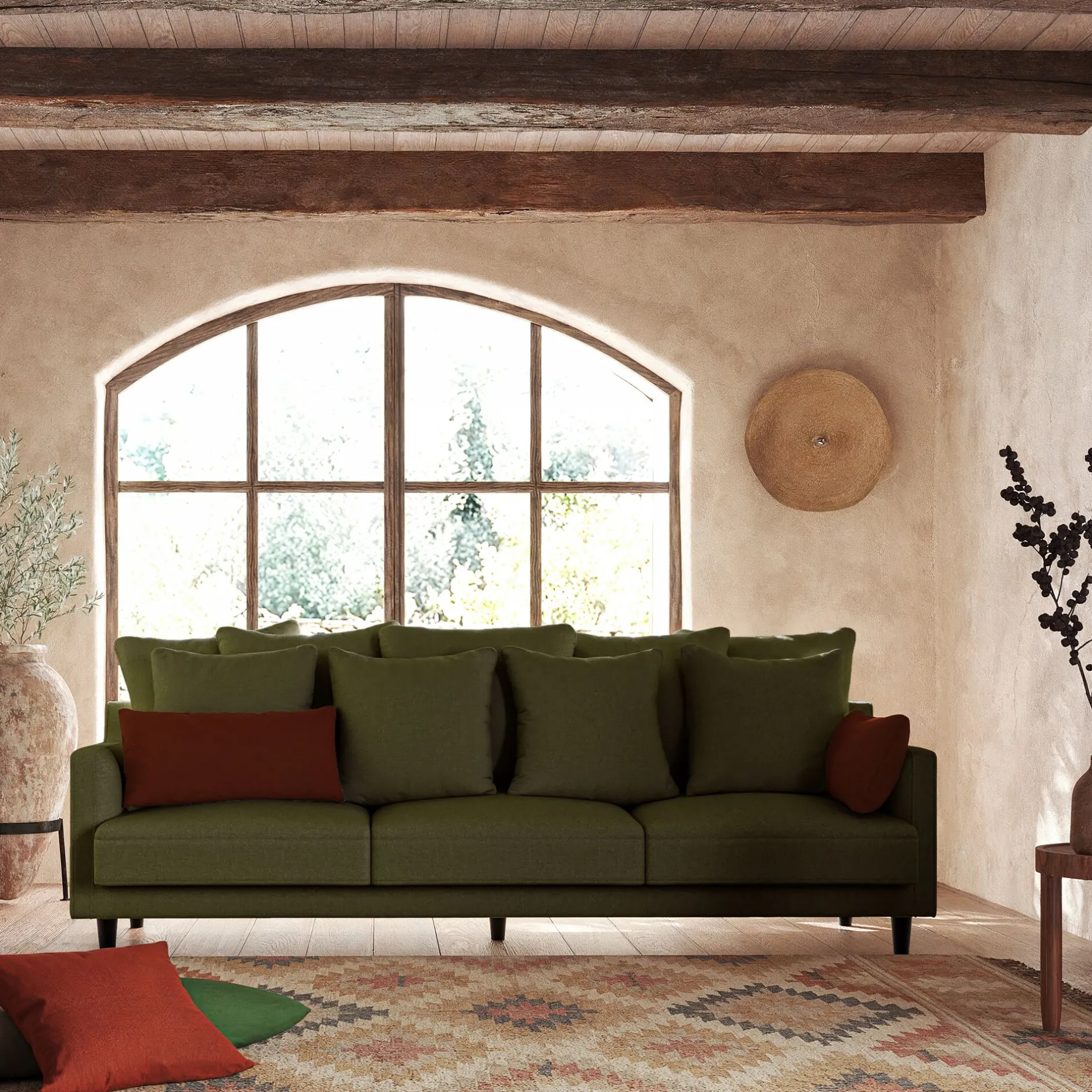 Fabriqué à la main par des passionnés italiens avec une tradition ancestrale dans le domaine du siège et de la tapisserie, ce canapé saura séduire les amateurs de déco. LENITA est une remarquable réinterprétation moderne d’un canapé, inspiré de l’époque somptueuse du Second Empire. Ce canapé fixe de 6 places en tissu joint, avec sa couleur vert cèdre, est une façon idéale de décorer son salon d’une pièce raffiné qui vous permettra d’accueillir amis et famille. Installez-vous confortablement dans ce canapé moelleux, garni de plumes d’oies et venez vous détendre pour des moments de pur bien-être. Sa ligne, ses courbes, la préciosité de la matière veloutée inspirent le raffinement. Les multiples coussins repositionnables vous donneront le juste confort à tout moment de la journée. Son assise profonde et généreuse invite à la paresse. Il sera incontestablement la pièce qui vous fera passer de très bons moments cocooning.
