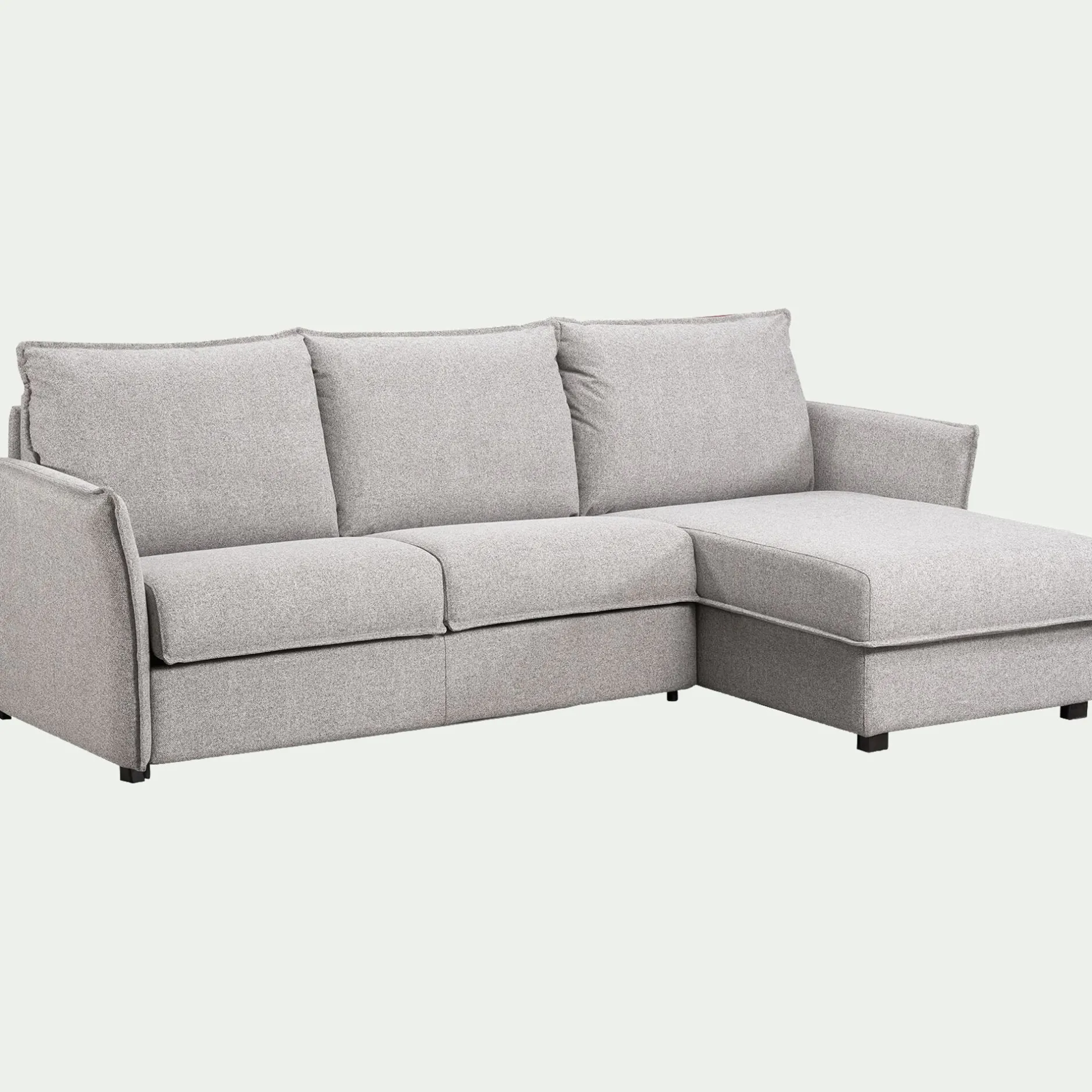 Le canapé Moya associe confort et savoir-faire italien pour sublimer le salon. Ce canapé d’angle convertible se distingue par son soutien optimal, pensé pour épouser chaque partie du corps. En un geste, son mécanisme express dévoile un couchage de 140×195 cm, doté d’un matelas de 17 cm d’épaisseur et d’une densité de 35kg/m³, parfaitement adapté à un usage quotidien. Idéal pour recevoir famille et amis, il garantit des nuits reposantes et agréables. Son revêtement en tissu Sogno, dans une élégante teinte gris borie, apporte une touche contemporaine et intemporelle à la décoration. Pratique et fonctionnel, ce canapé d’angle dispose d’un angle réversible, à disposer à droite ou à gauche selon l’aménagement de la pièce. Un coffre de rangement sous la méridienne vient compléter cette pièce de caractère et la rendre entièrement fonctionnelle.