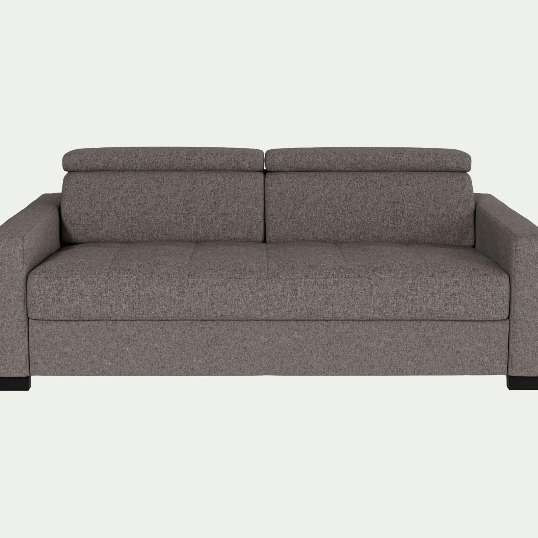 Mauro est une gamme de canapés au style contemporain et d’une grande élégance pour décorer votre salon. Conçu en Italie, il est le fruit d’un travail minutieux et d’un savoir-faire unique. Ce canapé 3 places en tissus pop couleur taupe, arborant de larges accoudoirs de 15 cm et des têtières relevables, vous procurent un confort d’assise incomparable et vous invite à savourer d’agréables moments de détente. Avec sa fonction convertible, vous pourrez le transformer en un confortable couchage afin d’accueillir famille et amis sur un matelas Bultex. Un meuble de fabrication européenne qui sera la pièce maîtresse de votre salon va et sublimera votre décoration d’intérieur.