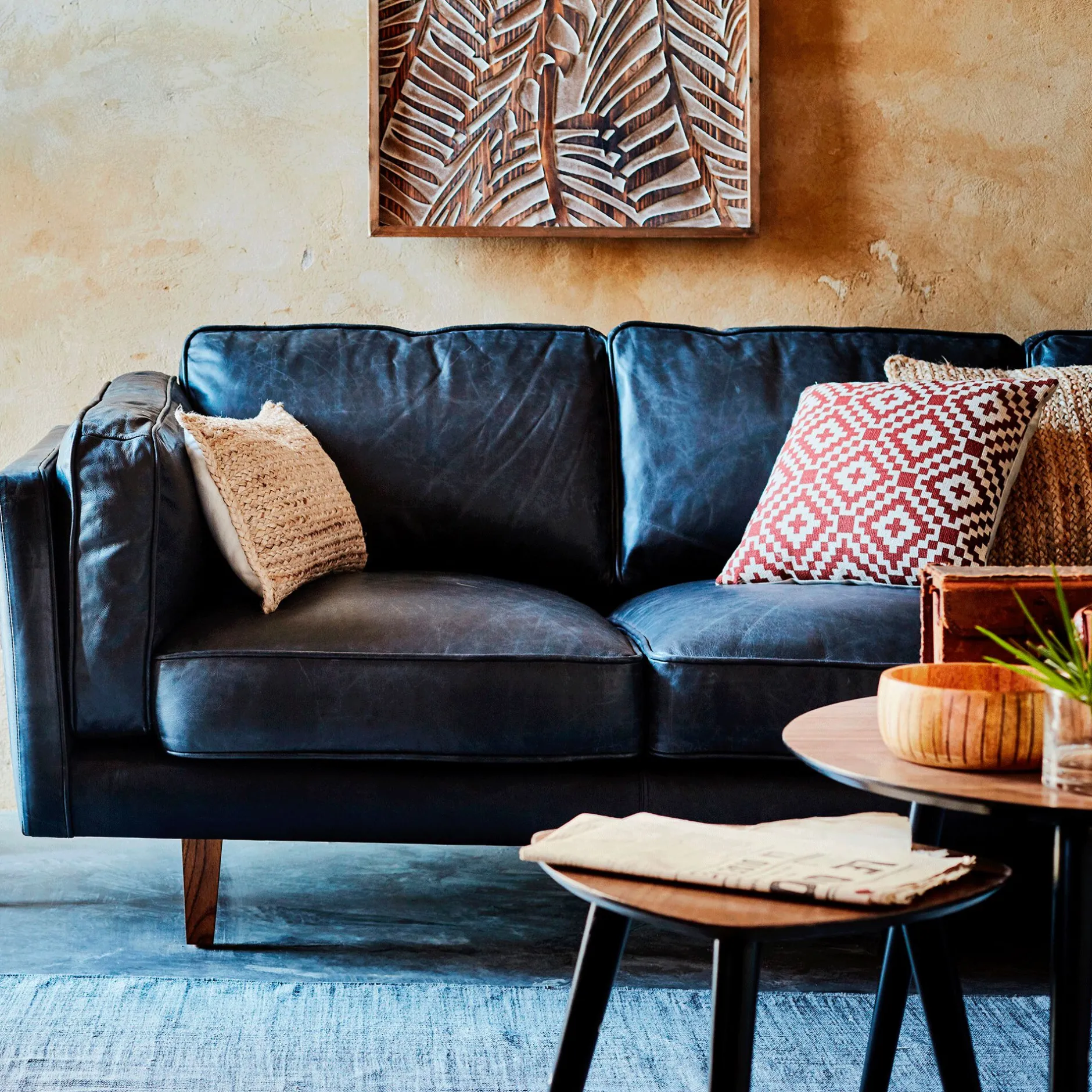 On craque pour l’élégance et le style affirmé de ce superbe canapé 3 places fixe en cuir de vachette noir. Il saura créer une ambiance chaleureuse et cosy dans votre salon et sera parfait dans une ambiance aux accents exotiques. Véritable invitation au confort, ce canapé vous propose un excellent confort d’assise avec un garnissage en plumes et des accoudoirs rembourrés pour des moments de détente agréables. Son cuir vieilli de grande qualité opte pour une finition aniline afin de conserver toutes les qualités d’un cuir authentique et vous proposera au fil des ans une belle patine ! On adopte avec plaisir cette pièce au design d’exception pour un salon qui affiche son originalité et son caractère.