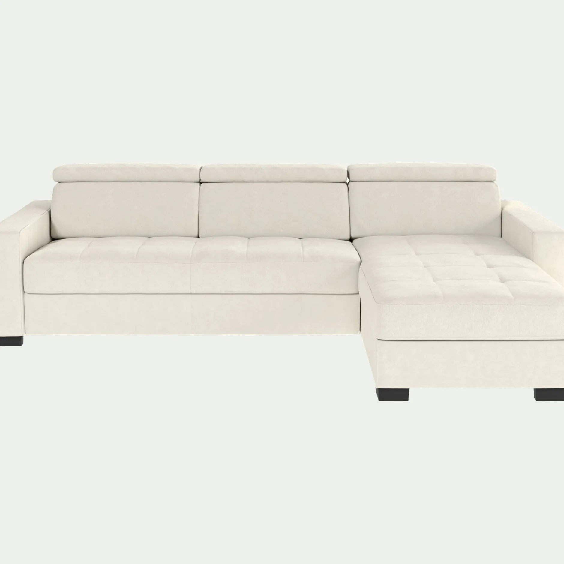 Type de canapé : Le canapé convertible ouvert mesure L.271 x P.205 cm avec un matelas de 140×195 cm.