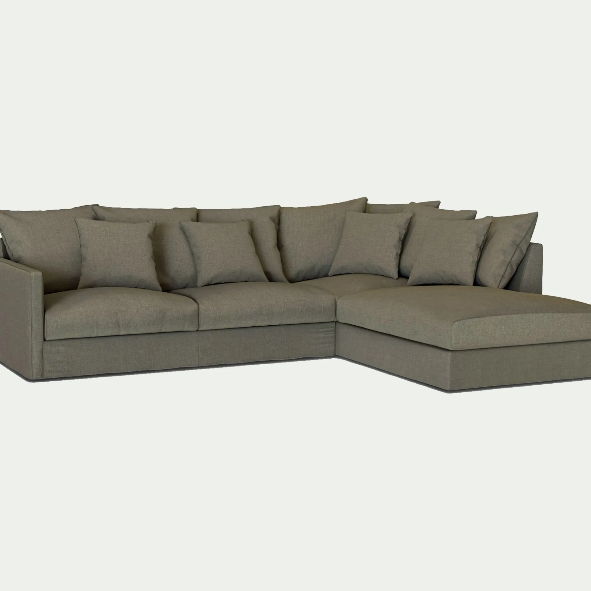 Canapé En Lin|Canapé 4 Places*alinea Canapé d’angle fixe droit en tissu – Vert cèdre